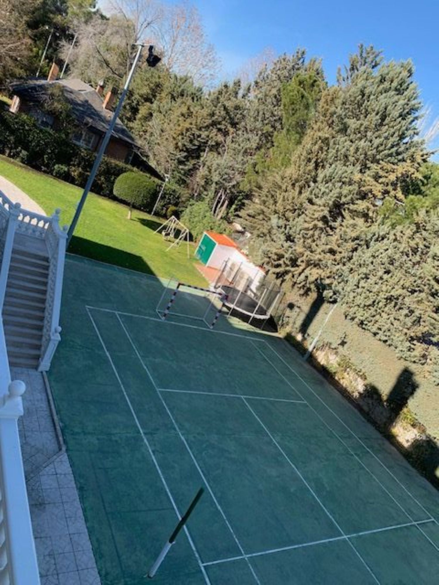 EAB Propiedades Inmobiliarias, vende esta preciosa villa mansión en la urbanización de Somosaguas que costa de la máxima seguridad. El chalet tiene los mejores materiales y de primera calidad en toda la vivienda.La ubicación es perfecta, al encontrarse muy cercana para el transporte público.La vivienda tiene nueve dormitorios en suite muy espaciosos y en la planta superior tiene cinco dormitorios con dos baños.En la planta principal se encuentran varios salones, comedor para veinte personas y una gran cocina con office. Además tiene una zona de planchado y servicio aparte.En la planta baja de nivel del suelo, es decir no sótano, nos encontramos con un gran comedor o sala de fiestas provista de barra de bar, aseos, un fantástico gimnasio, piscina cubierta y una sauna, también tiene una salón con tres dormitorios con su baño en suite.El jardín está en perfectas condiciones y en perfecto estado de conservación, tiene variaszonas, una zona para el disfrute de la piscina con barbacoa y otras zonas de uso deportivo.El chalet está provisto también de placas solares y Aero termia, de esta manera se evitan gastos de energía. Sin ninguna duda, merece la pena visitarlo.