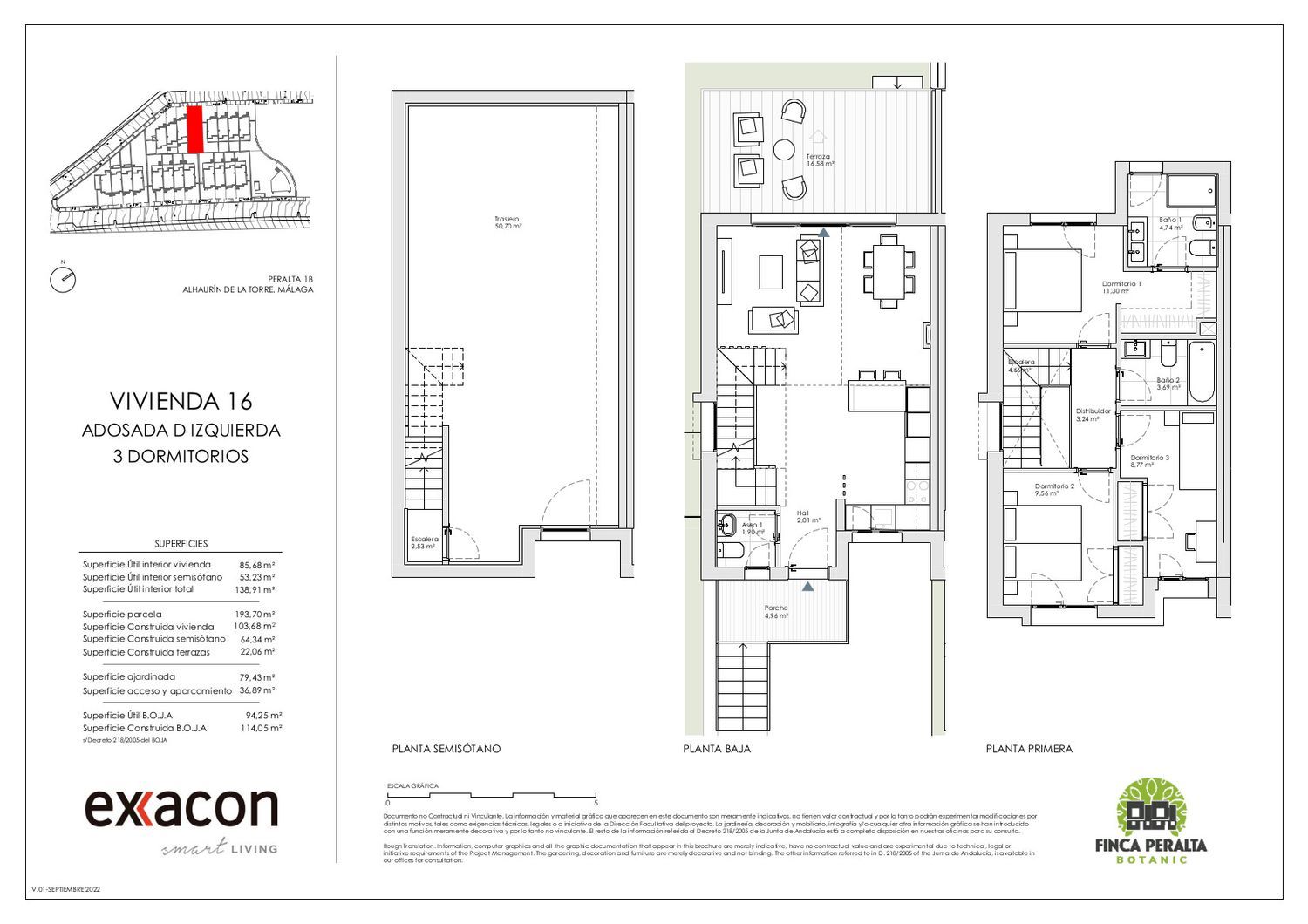 Odkryj Finca Peralta Botanic, nowy etap kompleksu Finca Peralta. Exxacon Smart Living ma na sprzedaż 36 domów w zabudowie bliźniaczej i szeregowej z 3 i 4 sypialniami. Wszystkie otoczone dużymi terenami zielonymi i w pełnym kontakcie z naturą, bez pomijania wszystkich usług i połączeń ze stolicą Malagi. Przygotowujemy ambitny projekt, w którym materiały budowlane i jakość wnętrz będą nowoczesne i przyjazne. Domy są rozmieszczone na 2 piętrach i półpiętrze, z parkingiem, werandą i tarasem. Klejnotem każdego z nich jest przestronna piwnica, duża przestrzeń z naturalnym światłem. Obszar oferuje spokojne otoczenie, w dolinie otoczonej krajobrazami regionu Guadalhorce, Finca Peralta Botanic znajduje się 20 minut od stolicy Malagi i zaledwie 15 minut od międzynarodowego lotniska Costa del Sol, połączonego zarówno transportem publicznym, jak i prywatnym. The tranquillity of nature just a few steps away from the city.-At only a few minutes by car you can enjoy a wide range of restaurants, and the charm of a typical Andalusian village and gastronomic reference as Alhaurín de la Torre.-Because we know what is important to you and because we want to offer you a space where you will be happy... choose Finca Peralta Botanic, your best option to call home.¡Mucha Vida!This development aims to evoke peace, tranquillity, health and happiness to its owners.Feel safe in your new home.-Feel safe in your new home.-Because we know what is important to you and because we want to offer you a space where you will be happy... choose Finca Peralta Botanic, your best option to call home.¡Mucha Vida!