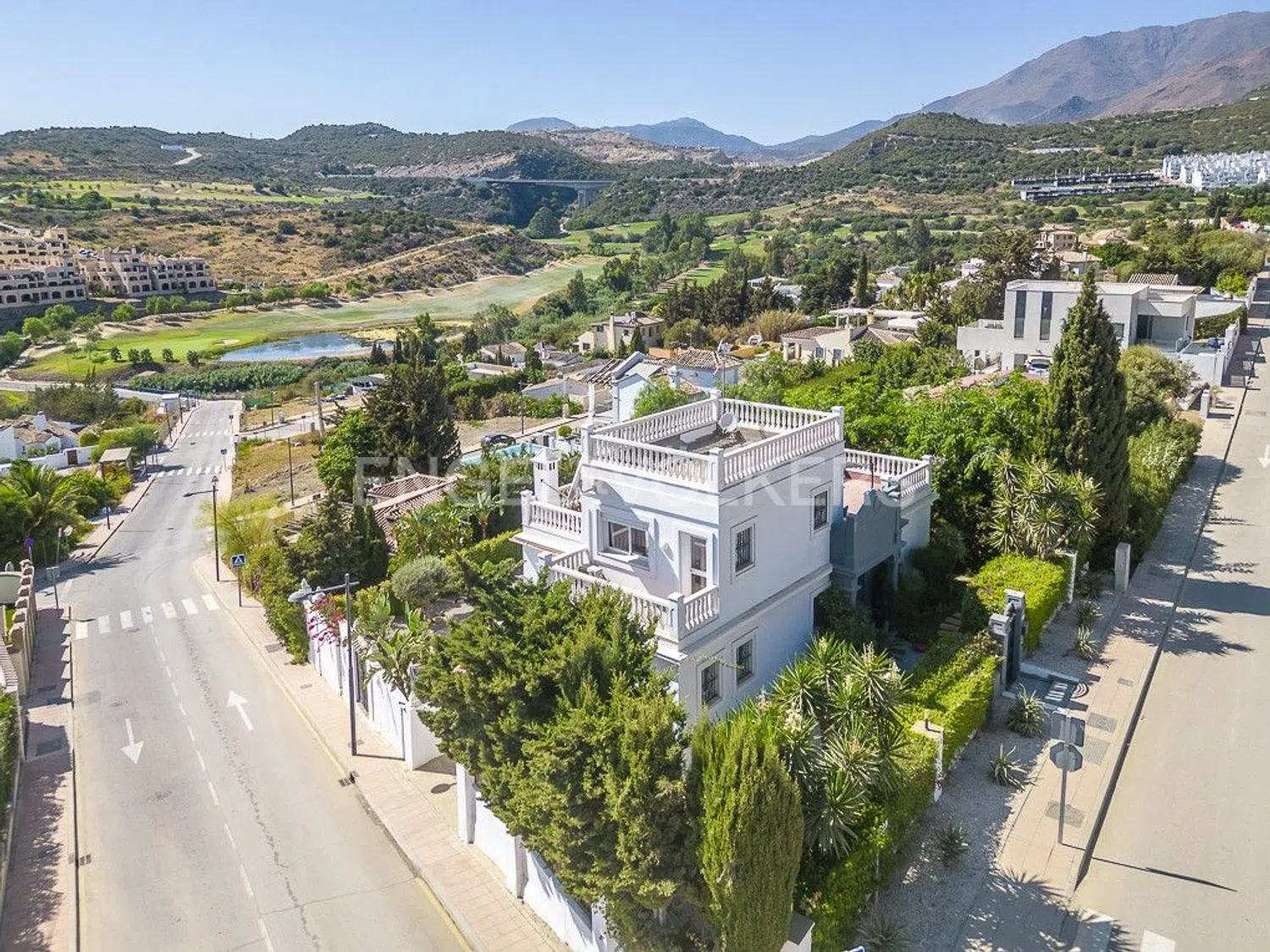 Villa de lujo con vistas al mar, al campo de golf y a las montañas de Sierra Bermeja Esta impresionante villa ofrece lo último en vida de lujo, con impresionantes vistas panorámicas al prestigioso campo de golf de Valle Romano y las colinas circundantes. Recientemente renovada a la perfección, esta villa combina a la perfección la elegancia moderna con el encanto andaluz, creando una casa verdaderamente excepcional. Esta amplia propiedad, que se distribuye en 266 m² y tres plantas, está diseñada para la comodidad y el estilo. La primera planta cuenta con una amplia y luminosa sala de estar que se abre a una gran terraza con piscina privada y vistas panorámicas al campo de golf. Una cocina totalmente equipada, 2 dormitorios, 2 baños y un amplio espacio de armario completan este nivel. En la segunda planta, una segunda sala de estar, también con cocina, es ideal para recibir invitados. Hay 2 dormitorios adicionales, 2 baños y un tercer dormitorio en la planta solárium, perfecto para tomar el sol y disfrutar de unas vistas impresionantes. Esta villa viene completamente amueblada y equipada con aire acondicionado, doble acristalamiento, sistema de alarma, zona de barbacoa y solárium. Ubicada a solo unos minutos de la Casa Club Valle Romano, centros comerciales y el puerto deportivo de Estepona, esta propiedad es ideal tanto para una vida de lujo como para una inversión. Se puede dividir fácilmente en dos unidades independientes, lo que ofrece excelentes oportunidades de alquiler. Esta villa, una joya poco común en la Costa del Sol, es una visita obligada para cualquiera que busque lujo, comodidad y potencial de inversión.