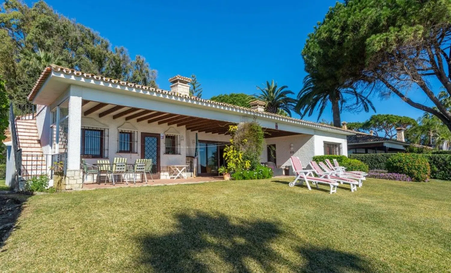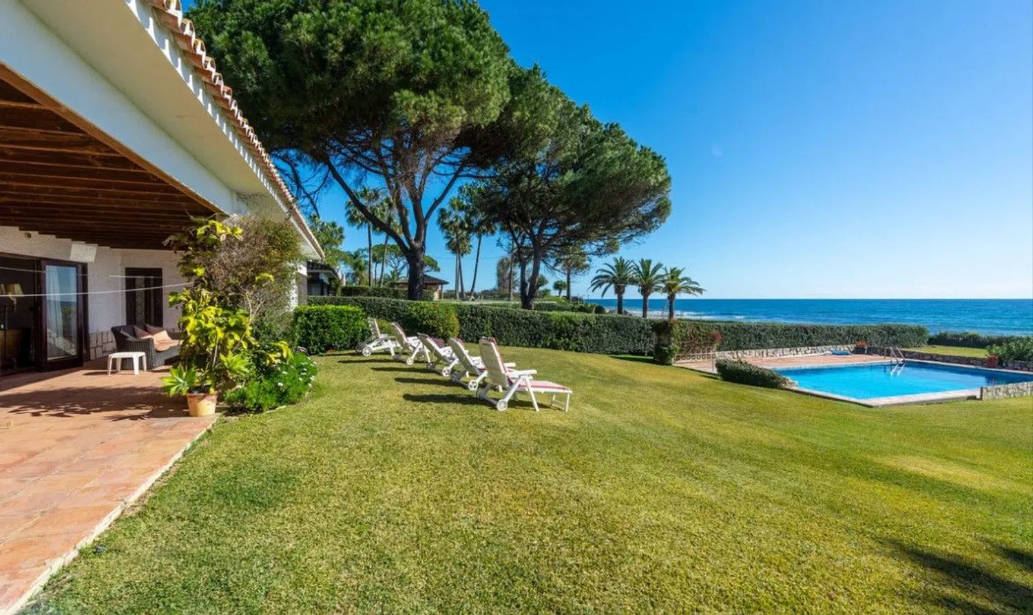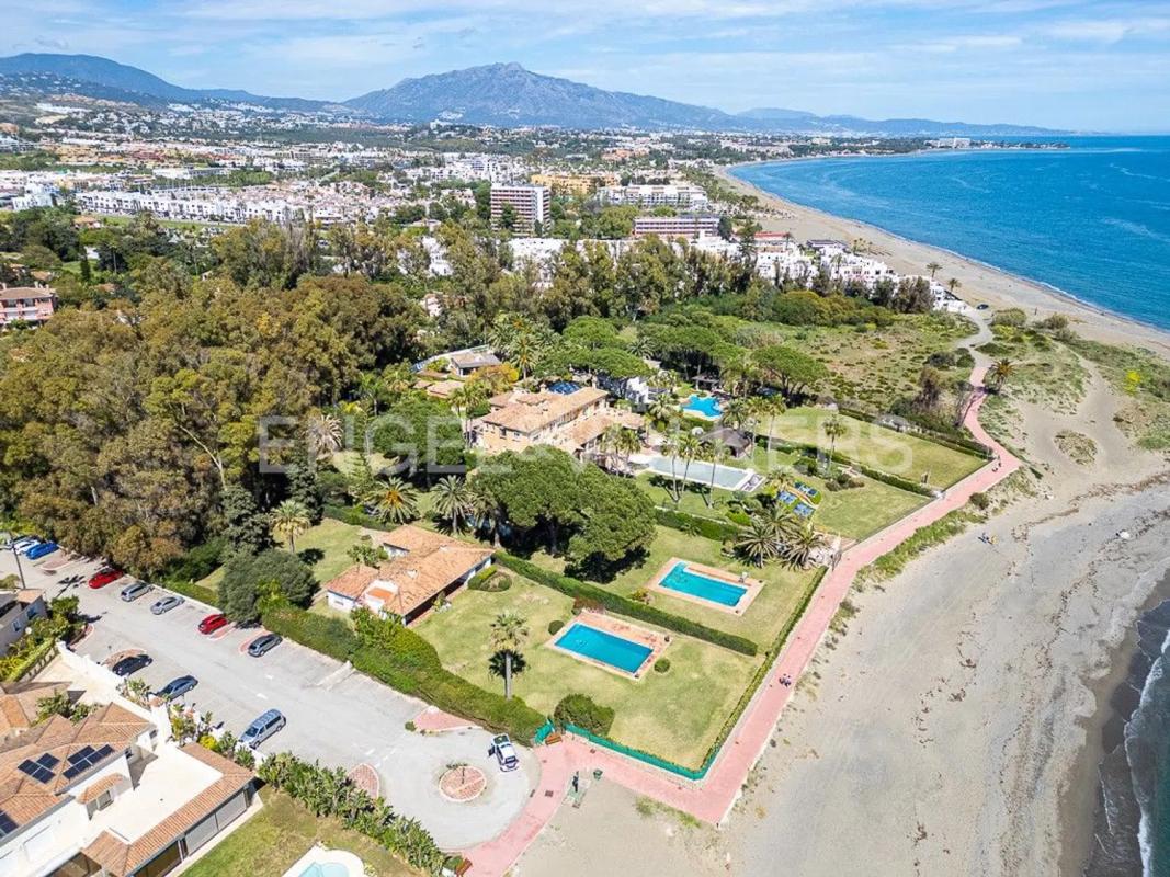 Villa en primera línea, una excepcional oportunidad de inversión en la prestigiosa Nueva Milla de Oro Esta villa de ensueño, ubicada en la primera línea de mar, goza de una orientación sur que permite disfrutar de impresionantes vistas panorámicas al mar desde su amplia terraza. La ubicación es inmejorable, con acceso directo a la playa al final de la calle y una excelente conexión con la autopista a tan solo un minuto de distancia. La propiedad dispone de un espacioso salón-comedor, una cocina semi-equipada, cuatro dormitorios dobles, un dormitorio individual, tres baños completos y dos aseos. Además, cuenta con una terraza en el lado norte, rodeada de jardín, y otra terraza al sur con jardín y una piscina que se abre hacia el mar, creando un entorno perfecto para el relax y la privacidad. Totalmente cercada y en muy buen estado de conservación, la villa no ha sido renovada, ofreciendo así un potencial ideal para personalizarla y maximizar su valor. La Nueva Milla de Oro junto a la playa es el tramo de litoral de la Costa del Sol, entre el oeste de Marbella y la ciudad de Estepona. Salpicada de magníficos restaurantes, clubes de playa de moda, hoteles de lujo, tiendas, boutiques y servicios, la vida aquí es fácil, divertida e ideal tanto para las vacaciones como para la residencia permanente. Algunos de los exclusivos hoteles y complejos junto a la playa son el Hotel Kempinski, de cinco estrellas, el Hotel Las Dunas, el Mett Hotel y The Flag. Entre los clubes de playa figuran Laguna Village, Puro Beach y el Villa Padierna Palace's Beach Club, que pertenece al único hotel de 6* de España, Villa Padierna. La popular zona cuenta con residencias en primera línea de playa y urbanizaciones que incluyen exclusivas villas, casas adosadas, modernos apartamentos y áticos con impresionantes vistas al mar. La excelente relación calidad-precio hace de esta zona una elección inteligente para el comprador exigente que busca una propiedad junto a la playa en la Costa del Sol. Estepona, Puerto Banús y Marbella centro se encuentran a entre cinco y quince minutos en coche, y a los aeropuertos de Málaga y Gibraltar se llega fácilmente en 45 minutos.