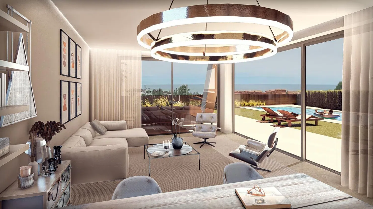 Te presentamos una magnífica villa de estilo contemporáneo que combina elegancia y confort, ofreciendo un refugio exclusivo con impresionantes vistas al mar y a la montaña. Disfruta de la tranquilidad y la belleza del amanecer en un amplio salón decorado con un estilo moderno, bañado en luz natural gracias a sus generosos ventanales. La cocina, completamente equipada y conectada con la terraza y la piscina, proporciona un espacio ideal para vivir una experiencia culinaria única, todo mientras te deleitas con las espectaculares vistas al horizonte. La villa cuenta con tres dormitorios, cada uno con su propio baño privado, creando un verdadero oasis de relajación. Los dos dormitorios en la planta alta ofrecen vistas al mar, mientras que el tercero, en la planta baja, tiene vistas a la piscina. Los baños están diseñados con materiales de alta calidad, brindando un ambiente lujoso y acogedor. El sótano es un espacio versátil, perfecto para convertirlo en una sala de juegos, un cine privado o un gimnasio. Además, esta increíble vivienda incluye tecnología de domótica, garantizando un estilo de vida moderno y cómodo. En el exterior, disfrutarás de 318 m² de terraza y un jardín terminado con césped natural. La impresionante piscina infinita de casi 36 m² cuenta con dos profundidades diferentes: una sección ideal para relajarse y otra para nadar. Equipado con un sistema de filtración de agua salada y luces LED que cambian de color, la piscina se entregará en perfecto estado, junto a una cómoda zona de ducha. Esta villa es el lugar perfecto para disfrutar de momentos inolvidables en un entorno de elegancia y bienestar. ¡Te invitamos a descubrir esta oportunidad única!