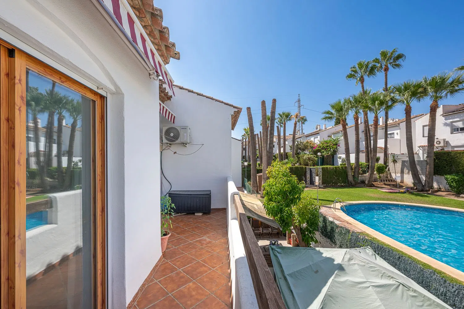 ¡Descubre tu nuevo hogar en esta encantadora casa adosada! Situada en una urbanización cerrada, esta propiedad de 120 m² construidos y 117 m² útiles ofrece el equilibrio perfecto entre comodidad y estilo. Con tres dormitorios amplios, cada uno con su propio balcón, y dos baños completos, tendrás todo el espacio que necesitas para tu familia. El salón comedor, con su acogedora chimenea, es ideal para reuniones o momentos de relax. La cocina está completamente equipada, lista para inspirar tus dotes culinarias. Disfruta de las tardes soleadas en la gran terraza, perfecta para barbacoas o simplemente para desconectar. Además, contarás con una plaza de parking y un trastero para mayor comodidad. La calefacción de bomba de frío/calor a gas natural garantiza un ambiente agradable durante todo el año. La urbanización ofrece una piscina con jardines comunitarios, ideal para refrescarse en los días calurosos. Ubicada frente a un club de pádel y cerca de todos los servicios de interés, esta casa combina tranquilidad y conveniencia. Construida en 1989 y en buen estado, es una oportunidad que no puedes dejar pasar. ¡Ven a visitarla y enamórate de tu futuro hogar!