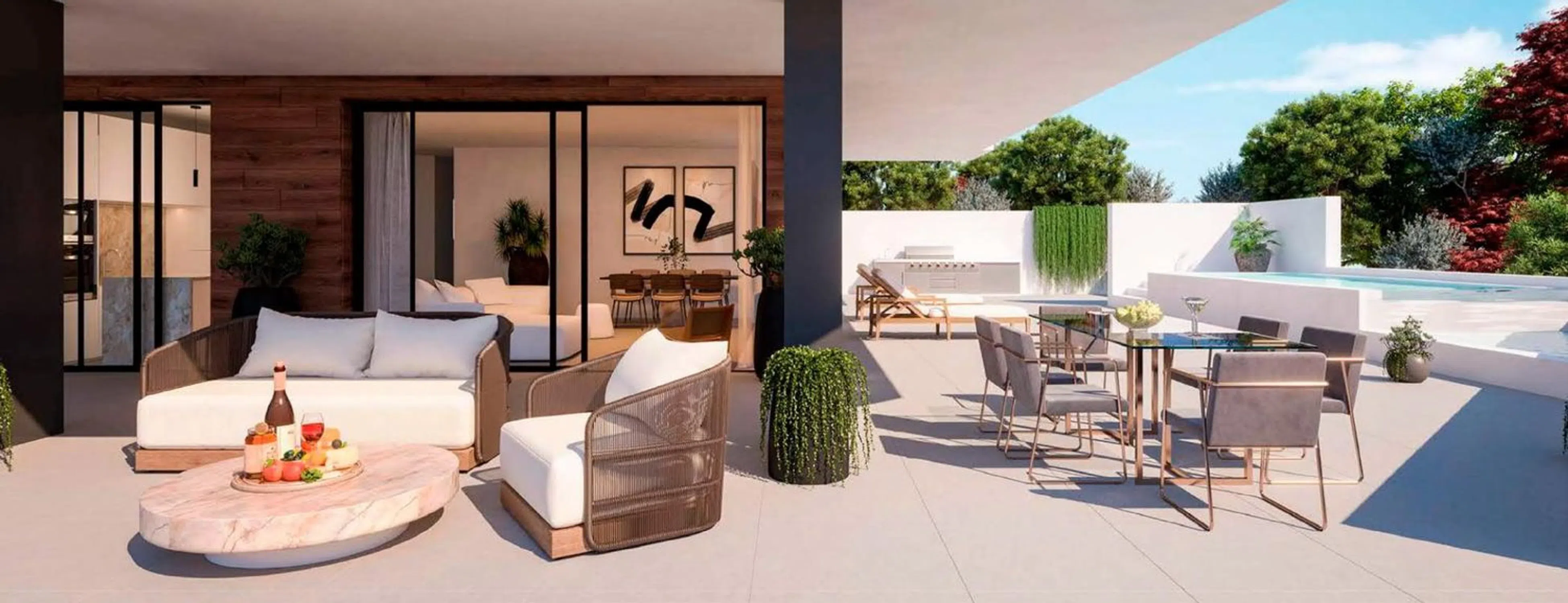 Garden Villa con piscina privada infinity, con 3 dormitorios y 2 baños, construido con primeras calidades y ubicada en 1 de los 3 edificios icónicos de diseño vanguardista que forman el residencial AURA HIGUERON FASE 2, en C/ EVA. situado en un enclave privilegiado, un entorno tranquilo y natural en la zona del HIGUERÓN, Fuengirola - Benalmádena. Su fácil acceso a la autovía A-7 facilita la conexión a los principales núcleos poblacionales a 20 minutos de Marbella, a 10 minutos de Fuengirola y Benalmádena y a 20 minutos del aeropuerto internacional de Málaga. Terraza de 186 m2, con vistas panorámicas de la costa y del mar Mediterráneo, la integración del entorno natural y los espacios interiores de la vivienda, provocan una armonía perfecta entre elegancia y comodidad. Las estancias de las viviendas son espaciosas y llenas de luz. Además, dispone de parking con 2 plazas de garaje y trastero incluidos en el precio. Cocinas completamente amuebladas y equipadas, suelo radiante en baños, persianas motorizadas en salón, cocina exterior, preinstalación de sistema de domótica, climatización centralizada, aerotermia. Con acabados de alta calidad y un diseño moderno que respeta el paisaje, estas viviendas representan una excelente inversión para quienes buscan un espacio único y lleno de posibilidades en la costa mediterránea. El complejo es un recinto cerrado con amplias zonas verdes y jardines mediterráneos, dos piscinas comunitarias infinity de orientación sur que ofrecen unas vistas espectaculares al mar en un entorno natural apacible. Además, ofrece todas las comodidades y equipamientos, como zona de coworking, gimnasio y spa con sauna y piscina climatizada. Así mismo, brinda todas las alternativas de servicios a su alcance (centro comercial, ocio, transporte y gastronomía). Por último, destacar su cercanía, a escasos metros del Club Higuerón Resort, uno de los living-resorts más exclusivos del sur de Europa y donde se ubica el Higuerón Hotel Curio Collection by Hilton. Este proyecto ha sido cuidadosamente diseñado para ofrecer un estilo de vida que maximice el confort y la exclusividad, fusionándose plenamente con el entorno natural de la costa. Cada espacio de las viviendas está pensado para ofrecer una experiencia única, ya sea disfrutando de un amanecer en sus amplias terrazas, tomando un baño en la piscina o compartiendo momentos inolvidables con vistas al mar. - En cumplimiento del Decreto 218/2005 de 11 de octubre de la Junta de Andalucía, se informa al consumidor que el precio publicado no incluye los gastos derivados de la compraventa: Impuesto sobre el Valor Añadido (IVA), Impuesto de Actos Jurídicos Documentados (AJD), ni los gastos de Notaría y Registro. Las cantidades entregadas a cuenta durante la construcción están garantizadas mediante aval bancario. Servicios de valor añadido y Asistencia multilingüe: Para su tranquilidad, podrá contar con la asistencia y asesoramiento legal de nuestro abogado in-house durante todo el proceso de la compraventa. Además, nuestro equipo le atenderá fluidamente en español, francés, italiano e inglés.