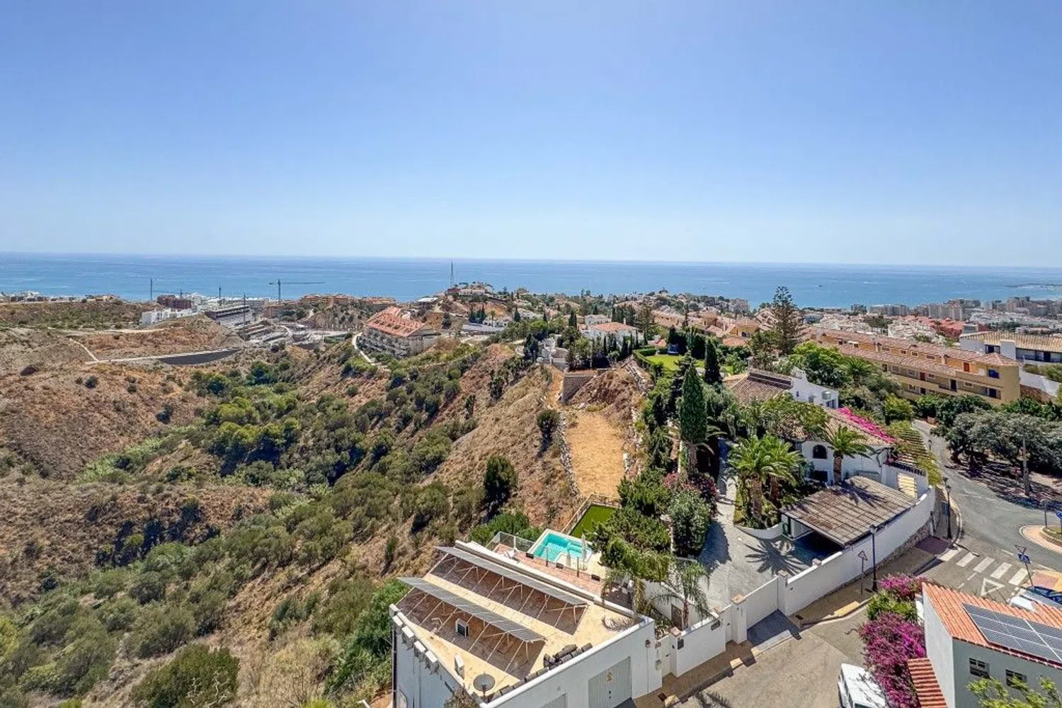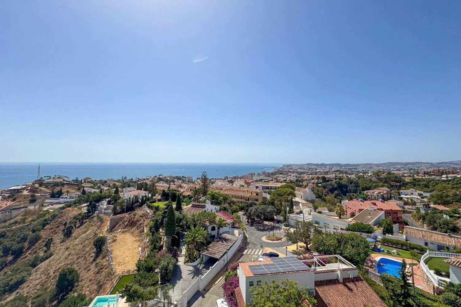 Descubra este impresionante ático de 3 dormitorios y 2 baños, que ofrece 152 m² de lujoso espacio habitable, complementado por una amplia terraza envolvente de 84 m² que ofrece impresionantes vistas panorámicas de 180° al mar Mediterráneo. Situado en la exclusiva zona de Torreblanca Alta, este luminoso ático cuenta con ventanas de suelo a techo que inundan el interior con luz natural, creando un ambiente sereno y tranquilo. El corazón de la casa cuenta con una amplia cocina abierta y un gran salón-comedor, ambos diseñados para la comodidad y el estilo. Salga a la terraza desde cualquier habitación y déjese cautivar por las ininterrumpidas vistas al mar, el telón de fondo perfecto para cenar al aire libre, tomar el sol o simplemente disfrutar de la puesta de sol sobre el agua. Los residentes se benefician de unos jardines muy bien cuidados y una piscina comunitaria, que ofrecen un entorno tranquilo, similar al de un complejo turístico. La ubicación combina lo mejor de ambos mundos: una vida tranquila con fácil acceso a todos los servicios necesarios, como tiendas, restaurantes y transporte público. La playa está a sólo unos minutos, y la cercana autopista garantiza conexiones rápidas con Málaga y toda la Costa del Sol. A sólo 25 km del Aeropuerto Internacional de Málaga, este ático está a un tiro de piedra de la vibrante ciudad de Fuengirola, conocida por sus bares de tapas de lujo, cafés con encanto y restaurantes de alta gama. Enclavado en las exuberantes laderas de Torreblanca, el barrio ofrece una mezcla perfecta de encanto andaluz y comodidad moderna, por lo que es una zona muy solicitada tanto por residentes como por veraneantes. Tanto si busca una residencia a tiempo completo como una rentable inversión de alquiler, este ático ofrece unas vistas incomparables, tranquilidad y acceso a uno de los mejores lugares de la Costa del Sol. ¡No se pierda esta rara joya!