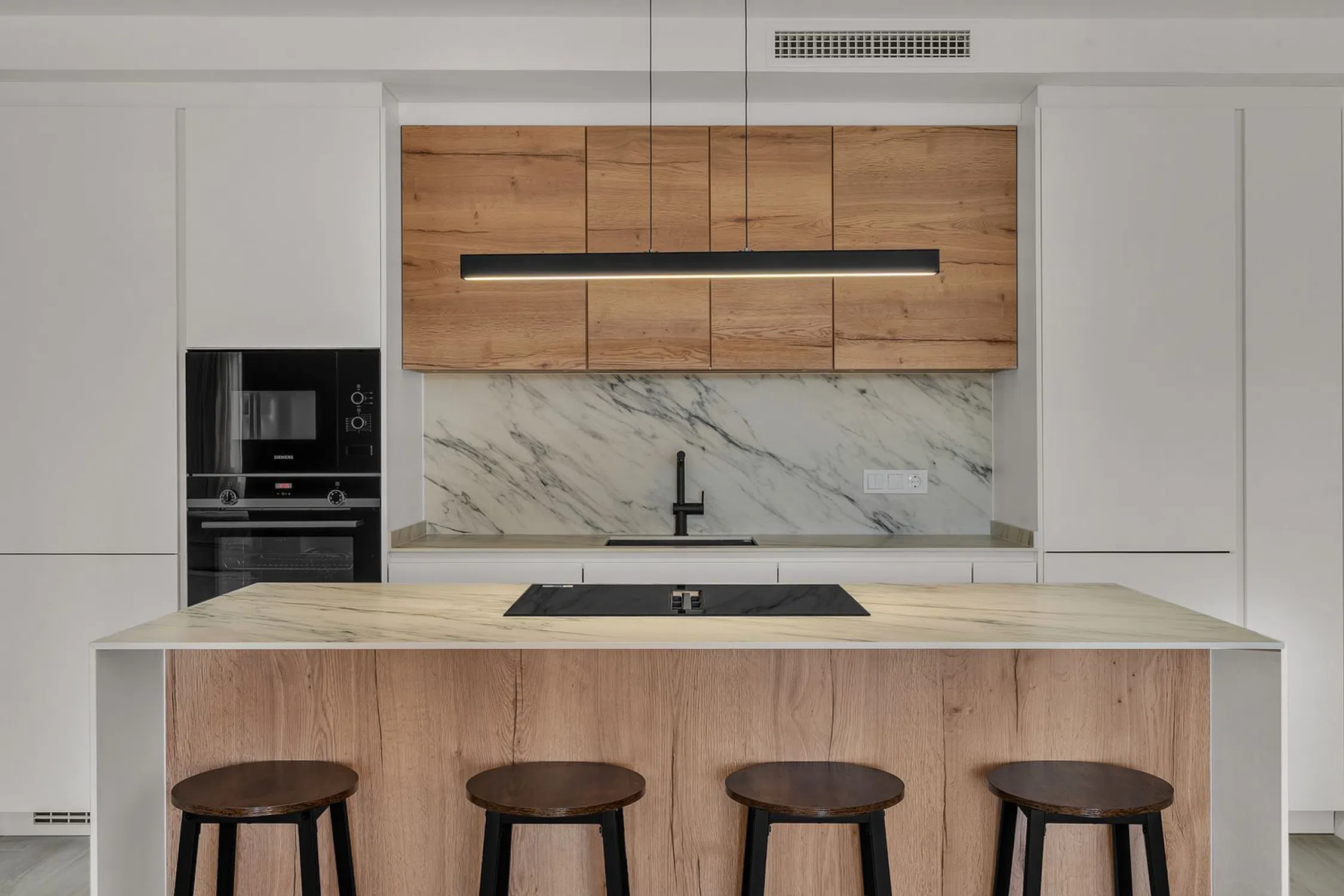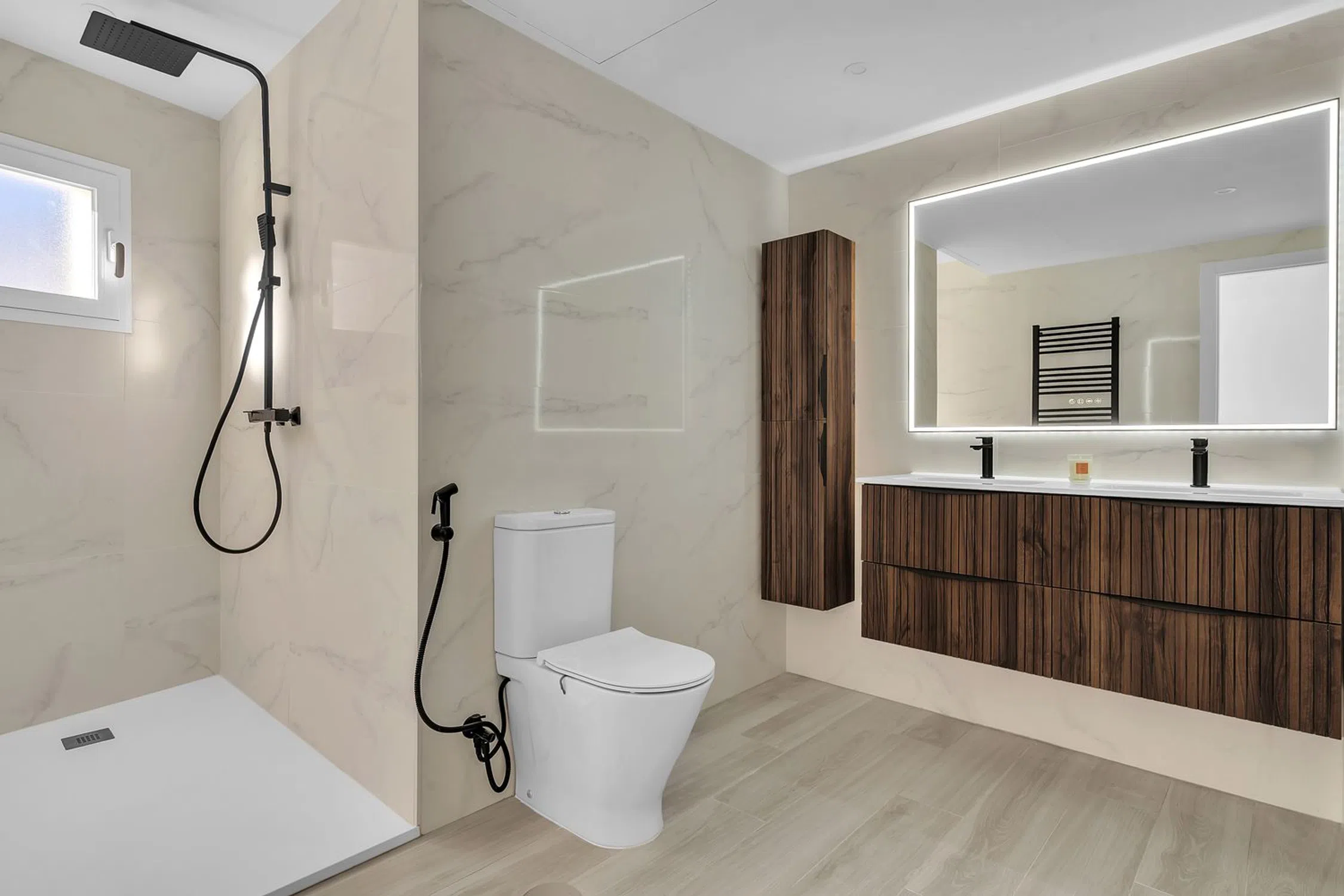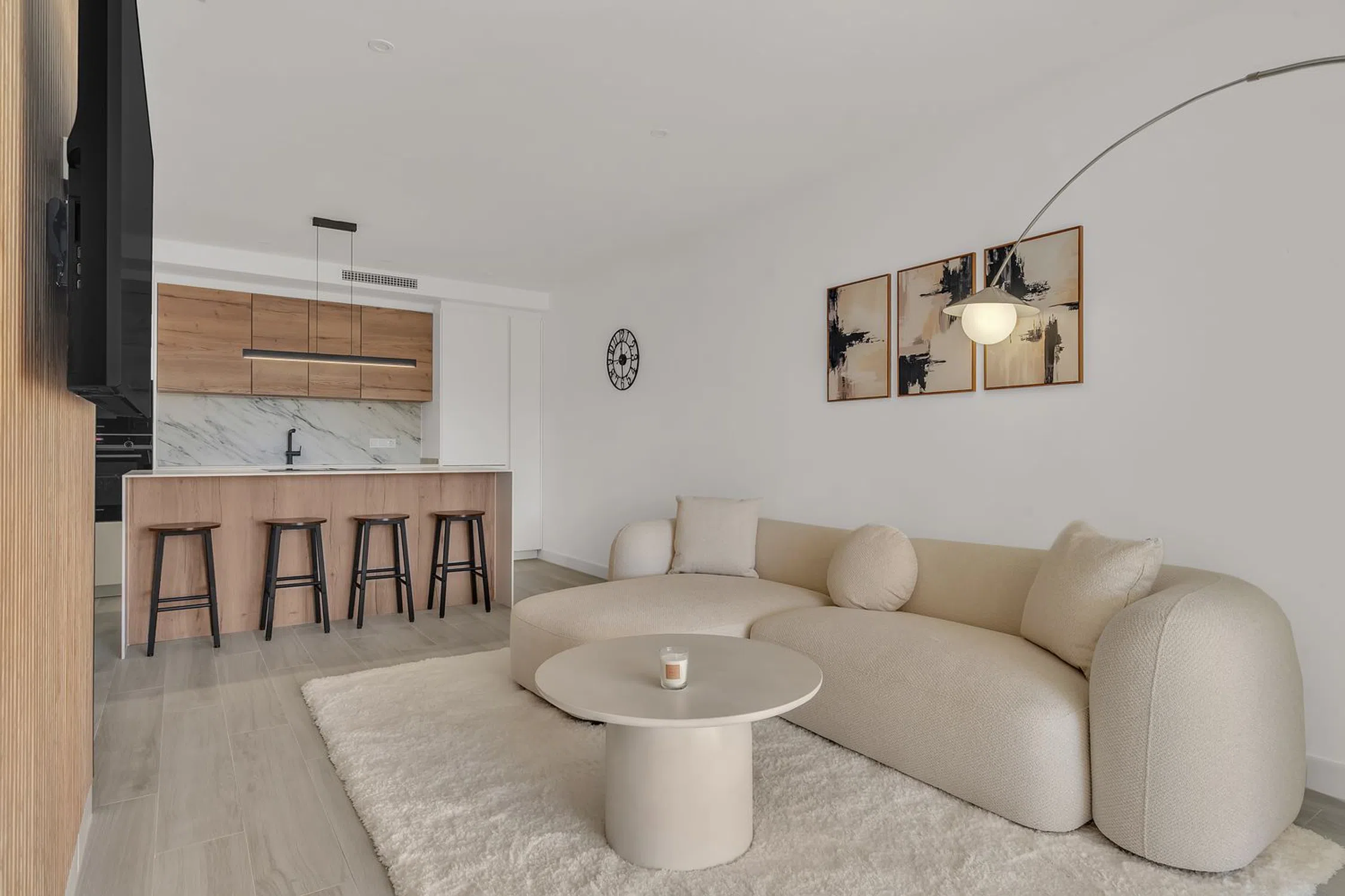 Elegante Apartamento en Primera Planta con Acabados de Alta Gama Este sofisticado apartamento en primera planta ofrece un estilo de vida moderno y exclusivo. Dispone de tres dormitorios y una excelente orientación este / sureste, lo que garantiza abundante luz natural durante todo el día. La vivienda cuenta con puertas interiores a medida y una puerta de entrada personalizada, así como carpintería artesanal hecha a mano en el dormitorio principal, reflejando una cuidada atención al detalle. Los acabados y equipamientos son de alta gama en toda la propiedad. La cocina de diseño premium, con isla central, está totalmente equipada con electrodomésticos Siemens, incluida vinoteca. El apartamento se vende completamente amueblado, listo para entrar a vivir. Los suelos de gres efecto madera aportan calidez y continuidad en toda la vivienda. El luminoso salón se abre a la terraza mediante puertas bi-plegables, creando una perfecta conexión entre el interior y el exterior. Ambos baños disponen de duchas tipo walk-in, doble lavabo y toalleros calefactados, ofreciendo un ambiente elegante y funcional. Entre otras características destacadas se incluyen puntos de carga para teléfonos en todos los dormitorios y un nuevo sistema de aire acondicionado para máximo confort. Una propiedad ideal como residencia habitual, vivienda vacacional de lujo o inversión de alta calidad.