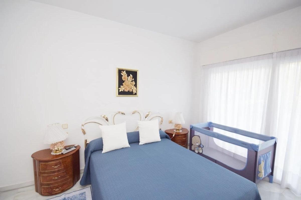 Bonito apartamento con jardín en una de las zonas residenciales más prestigiosas en la Milla de Oro de Marbella. El complejo se encuentra al lado del Hotel Don Pepe. El centro de Marbella está a pocos minutos andando por el Paseo Marítimo. Maravillosos jardines tropicales con amplia zona de piscina. El apartamento impecable consta de hall de entrada, amplio salón/comedor, cocina completamente equipada con pasaplatos y lavadero separado, 2 dormitorios y 2 cuartos de baño, uno de ellos en-suite. Amplia terraza privada con orientación sureste y vistas al jardín y a la piscina. Pequeño jardín.
