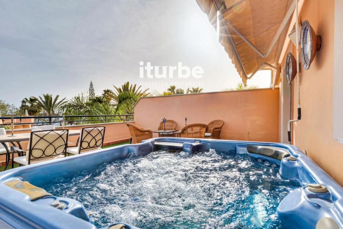 Fantástico apartamento Tipo Atico de un 1 dormitorio y un baño con un extra importante, cuenta con una estancia adicional que puede ser usada como oficina, dormitorio o comedor. Dispone de una terraza enorme de 60 m2 con cara al sur. La terraza tiene sol durante todo el día, orientación sur y tiene mucha privacidad. También se encuentra un jacuzzi. El piso es muy amplio y luminoso con muchas ventanas al exterior, por lo cual entra mucha luz del sol. En la urbanización se puede encontrar una piscina comunitaria con un jardín muy grande. Esta muy bien cuidado y mantenido. La vivienda cuenta con una plaza de garaje privada en la planta -1 del mismo edificio. El apartamento se localiza en la zona de Marbella Este, donde están las mejores playas, en concreto justo debajo de la vivienda se encuentra la playa Zaragoza, está a 500 metros (7 minutos andando) Servicios muy cerca de la vivienda, como por ejemplo supermercados, centro de negocios, restaurantes, etc.. . Iturbe Properties su Inmobiliaria de confianza en la costa del sol!