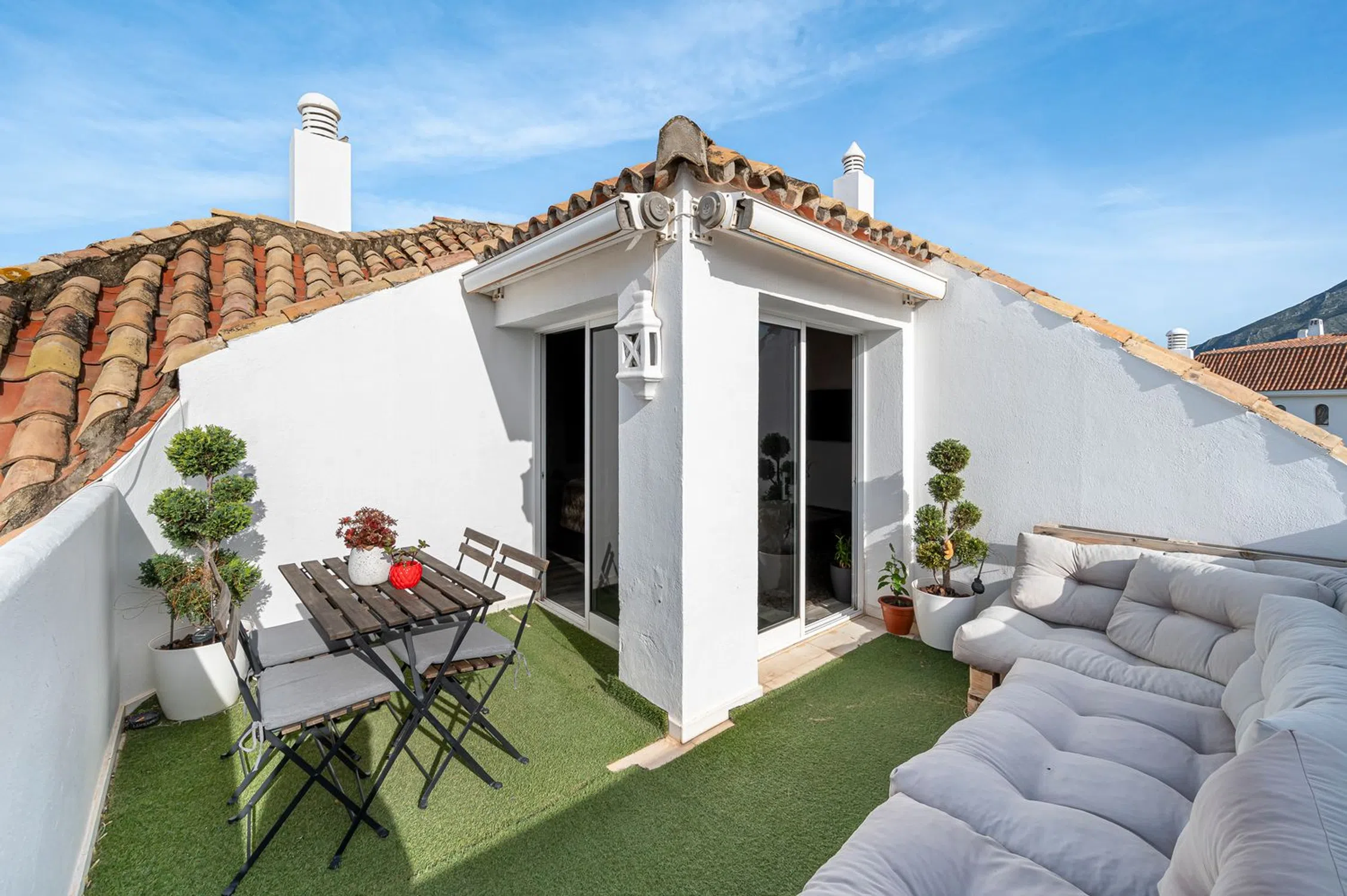 ¡Descubre este exclusivo ático en venta en Las Lomas del Marbella Club! Ubicado en una prestigiosa urbanización con jardines comunitarios y 3 piscinas, una de ellas climatizada en primavera. Disfruta de la luminosidad en cada rincón en este apartamento por el que se accede desde el recibidor por tramo de escaleras a la sala de estar, comedor y cocina totalmente equipada. Con 2 dormitorios y 2 baños en suite, fue reformado con las mejores calidades y buen gusto. La terraza de 21m2 en forma de ele ofrece bonitas vistas panorámicas a la montaña y al jardín de la urbanización. Ideal para vacaciones, a solo 5 minutos de Puente Romano y los mejores servicios de Marbella. Incluye una gran plaza de aparcamiento y un trastero en el precio. ¡No dejes pasar esta oportunidad de vivir en un lugar único! Abstenerse inversores ya no se permite el alquiler vacacional por estatutos de la comunidad. e.