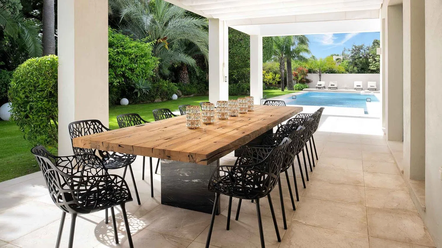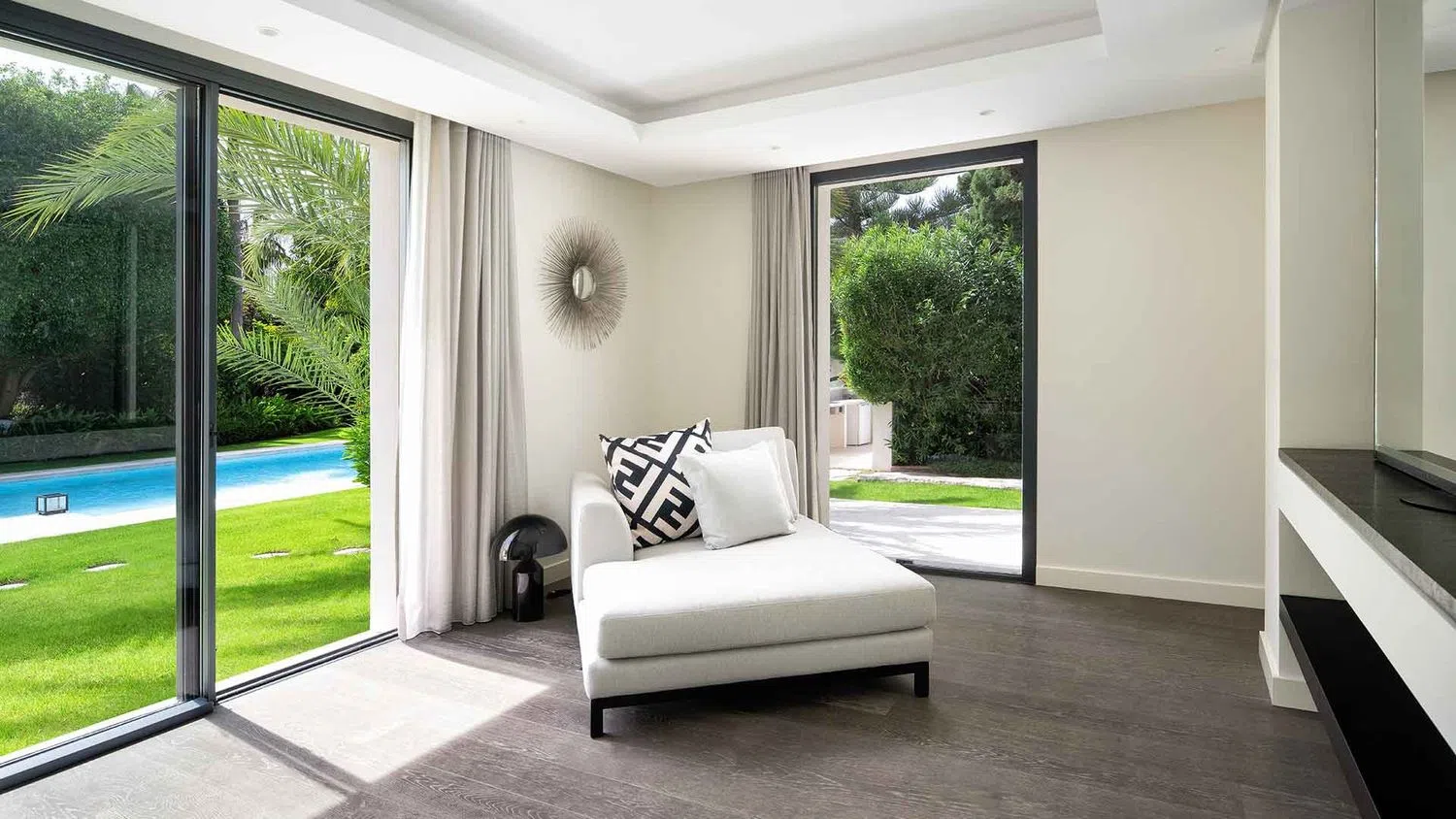 Villa en Urbanización Marbesa completamente renovada muy cerca de la playa en venta. Descubra un hogar donde el lujo se une a la tranquilidad en Marbesa, en Marbella Este. Ubicada en una extensa parcela de 2.500 m² de exuberantes jardines tropicales, esta impresionante villa de una sola planta ofrece una mezcla incomparable de elegancia y calidez. La propiedad cuenta con cinco dormitorios de generosas dimensiones, cada uno con su propio cuarto de baño, y dos aseos adicionales, lo que garantiza la comodidad y la privacidad de todos los huéspedes. Cuenta con un luminoso salón de planta abierta bañado por la luz natural. El impecable diseño destaca la elegancia contemporánea con muebles de diseño, grandes ventanales y una paleta de colores que crea una atmósfera acogedora. La cuidada distribución de la villa, en una sola planta, ofrece una fluidez y funcionalidad excepcionales. La zona exterior cuenta con una gran piscina, rodeada de jardines meticulosamente cuidados con palmeras y árboles frutales. La villa cuenta con un gimnasio totalmente equipado y sauna, así como dos habitaciones adaptables que se pueden personalizar para satisfacer sus necesidades. Un garaje interior con espacio para dos vehículos y aparcamiento exterior adicional garantizan la comodidad, mientras que los paneles solares ofrecen eficiencia energética y sostenibilidad. A pocos minutos de la playa de Cabopino y el puerto, el apartamento ofrece la combinación perfecta de serenidad y acceso a las mejores playas de la Costa del Sol. Situado a pocos minutos de las playas de Marbella, tiendas de lujo y restaurantes gourmet, se encuentra a tan solo 9 minutos del reconocido English International College, ideal para familias que buscan una educación de primer nivel para sus hijos. A escasos minutos encontrará el Campo de Golf de Cabopino, ideal para los amantes de este deporte. Esta propiedad se encuentra a la venta en esta agencia inmobiliaria con más de 30 años de experiencia en Marbella Centro y Milla de Oro.