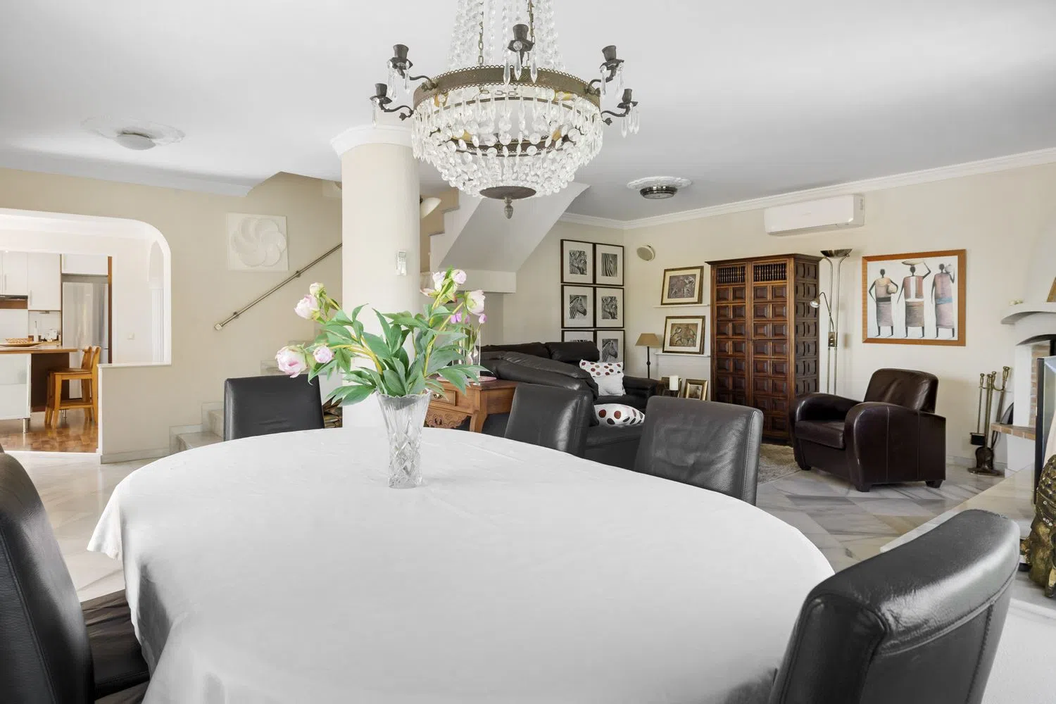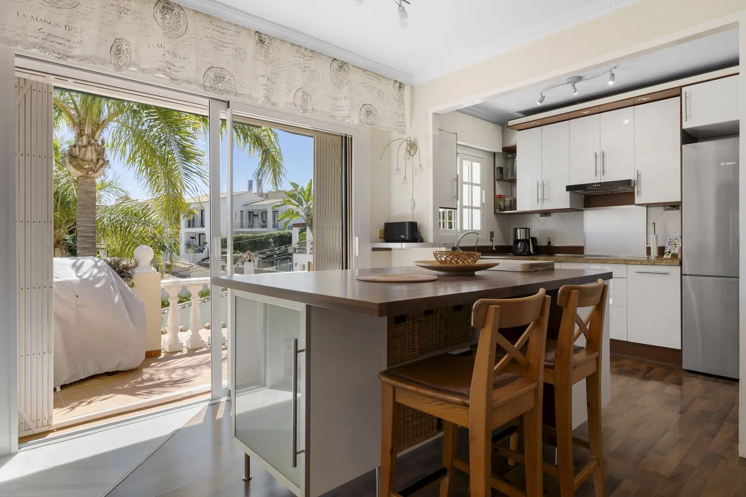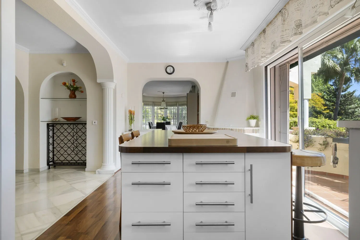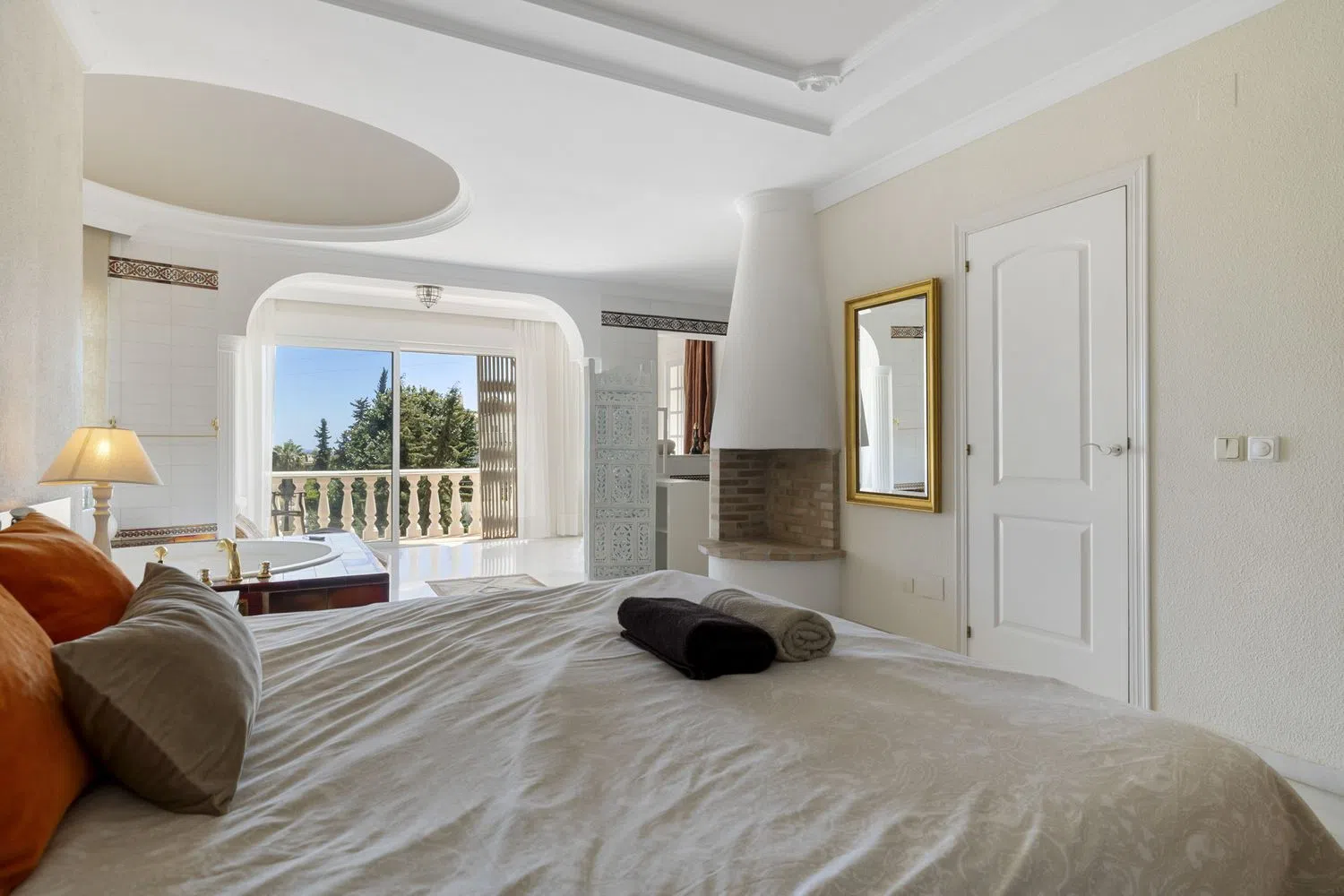 Encantadora villa tradicional en una ubicación privilegiada de Nueva Andalucía Ubicada en la tranquila y exclusiva Calle Los Jazmines, en el corazón de Nueva Andalucía, esta acogedora villa tradicional ofrece el equilibrio perfecto entre privacidad, confort y proximidad a todos los servicios. Rodeada de un entorno sereno, la propiedad se encuentra a poca distancia a pie de una variedad de bares y restaurantes, y a solo 5 minutos en coche del famoso Puerto Banús y las playas de la Costa del Sol. Al entrar en la villa, te recibe un amplio y luminoso salón con chimenea, que proporciona un ambiente cálido y acogedor para las noches más frescas. El comedor, perfectamente integrado, es ideal para disfrutar de momentos en familia o con amigos. La cocina americana, moderna y totalmente equipada, está diseñada para satisfacer las necesidades de los más exigentes, con electrodomésticos de alta gama y acabados de primera calidad. En esta planta se encuentran tres confortables dormitorios, dos baños completos y un aseo de cortesía. Desde todas las estancias se accede directamente a las terrazas cubiertas y descubiertas, que ofrecen diversas zonas de estar al aire libre, perfectas para disfrutar del clima mediterráneo durante todo el año. El nivel superior alberga un lujoso dormitorio principal en suite, que destaca por su amplitud y elegancia. Este espacio cuenta con un vestidor privado y un baño completo que incluye un jacuzzi, ideal para relajarse después de un largo día. La disposición de esta planta asegura total privacidad y comodidad, con vistas privilegiadas al entorno natural que rodea la villa. En el nivel del jardín, la villa ofrece un dormitorio de invitados independiente con su propio baño, proporcionando un refugio perfecto para los visitantes. Además, esta planta incluye una sauna, ideal para quienes buscan un espacio de relajación dentro de su propio hogar, y un lavadero completamente equipado, aportando funcionalidad y comodidad. El exterior de la villa es un verdadero oasis de tranquilidad. El jardín maduro, meticulosamente cuidado, rodea una hermosa piscina, que invita a disfrutar de los días soleados. Además, la propiedad cuenta con un bar abierto y una zona chill out con barbacoa, perfecta para entretener a los invitados o simplemente relajarse al aire libre. El garaje tiene capacidad para un coche, mientras que el aparcamiento interior ofrece espacio adicional para dos vehículos más, garantizando comodidad y seguridad. Esta villa es el lugar ideal para aquellos que buscan una residencia tradicional con un toque acogedor en una ubicación privilegiada. Con su proximidad a los servicios locales y las playas, y su ambiente privado y tranquilo, ofrece un estilo de vida envidiable en una de las zonas más deseadas de Nueva Andalucía.