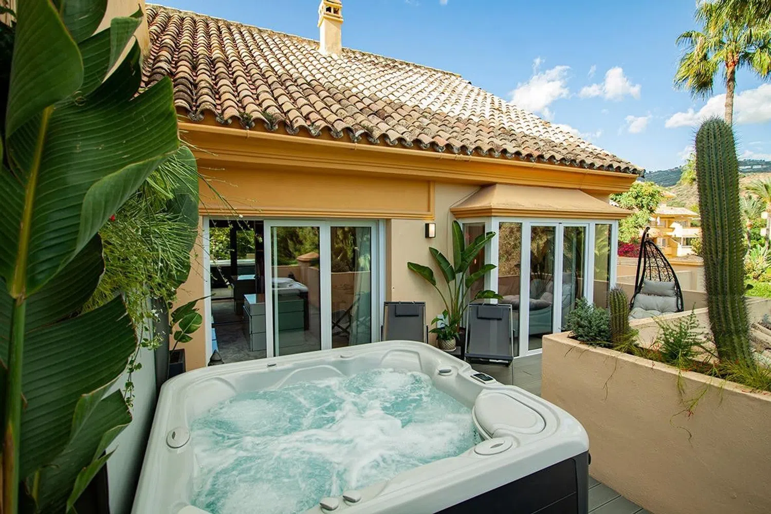 Descubre la máxima expresión de vida refinada en esta impresionante adosada en primera línea de golf, ubicada en la prestigiosa zona de Rio Real. Esta residencia combina a la perfección la elegancia con la serenidad de un campo de golf de primer nivel, ofreciendo un estilo de vida inigualable a solo minutos de las mejores atracciones de Marbella. Situada a solo 3 minutos en coche de playas vírgenes y del icónico Trocadero Arena, esta impresionante vivienda también ofrece fácil acceso al pintoresco paseo marítimo de Marbella, ideal para un paseo escénico hasta el vibrante centro de la ciudad, al que se llega en solo 6 minutos en coche. Esta exquisita adosada ha sido renovada meticulosamente con los más altos estándares, asegurando una experiencia de mudanza inmediata para sus nuevos propietarios. Al entrar, notarás de inmediato la artesanía superior y el diseño cuidadoso que se aprecia en cada rincón. La propiedad forma parte de una comunidad cerrada y segura, con vistas panorámicas al prestigioso campo de golf de Rio Real. La casa cuenta con cuatro amplios dormitorios y tres lujosos baños, ofreciendo espacio y comodidad de sobra. La suite principal es un verdadero refugio, con un generoso vestidor. La moderna cocina de alta gama está equipada con electrodomésticos de primera línea, convirtiéndola en un sueño para cualquier entusiasta culinario. En el exterior, un jacuzzi privado te espera, estratégicamente ubicado para ofrecer impresionantes vistas al campo de golf, ideal para relajarse en completa serenidad. Oportunidades como esta son escasas. Contáctanos hoy mismo para programar una visita privada y experimentar de primera mano el lujo y el encanto incomparables de esta excepcional propiedad.