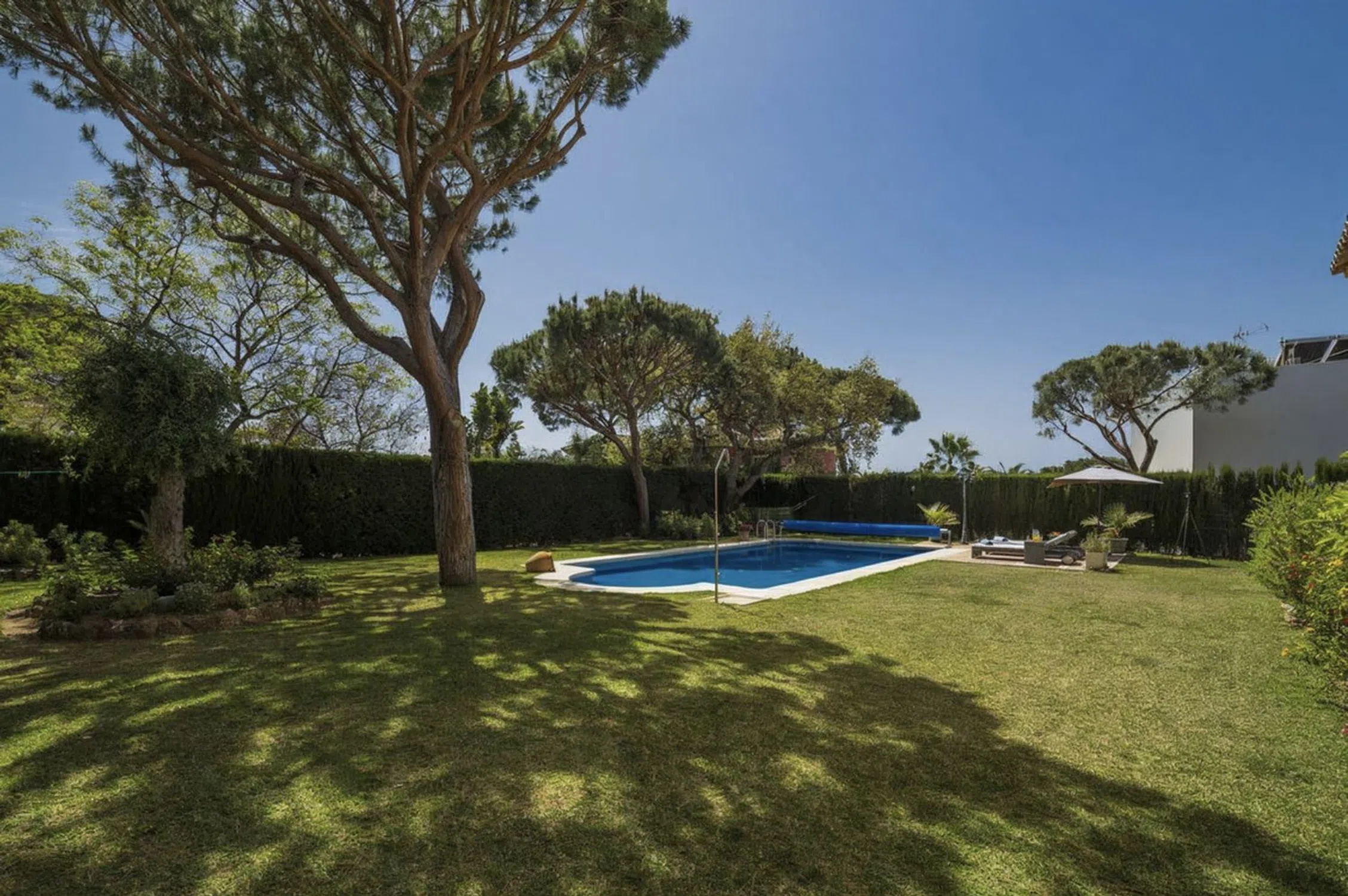 Exquisita villa con elegancia, privacidad y potencial de inversión en Elviria Esta villa de elegante diseño ofrece un estilo de vida sofisticado en una de las zonas residenciales más prestigiosas de Marbella Este. Un impresionante hall de entrada conduce a una cocina totalmente equipada con zona de desayuno y a un amplio salón-comedor de concepto abierto con chimenea y acceso directo a la terraza y al jardín paisajístico, ideal para una vida interior y exterior fluida. La vivienda cuenta con cuatro amplios dormitorios, todos con baños en suite, además de un aseo de invitados. Cada detalle ha sido cuidadosamente diseñado para combinar confort, luminosidad y elegancia atemporal. En el exterior se encuentra una zona lounge cubierta y un comedor al aire libre, rodeados por un jardín perfectamente cuidado con piscina climatizada, creando un oasis privado de tranquilidad. La propiedad dispone de garaje subterráneo para 2–3 vehículos, aparcamiento adicional y un gran potencial de ampliación para crear más dormitorios, baños, salas de ocio o almacenamiento. Elviria ofrece tranquilidad y proximidad a playas, golf, colegios internacionales y restaurantes. El centro de Marbella está a pocos minutos y el Aeropuerto de Málaga a unos 30 minutos. Una excelente oportunidad de inversión, con historial probado en alquiler vacacional de lujo. Informes anuales disponibles.