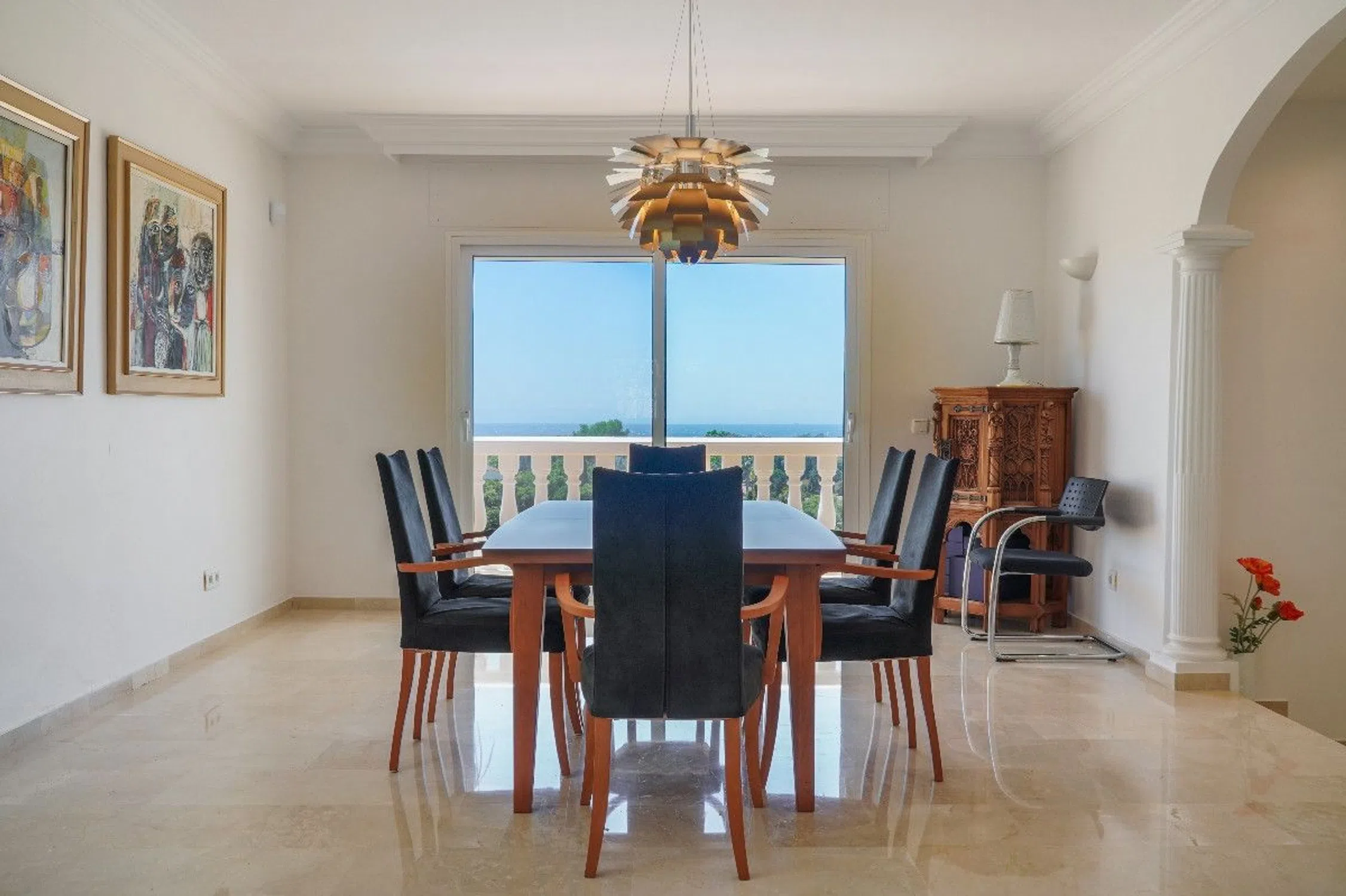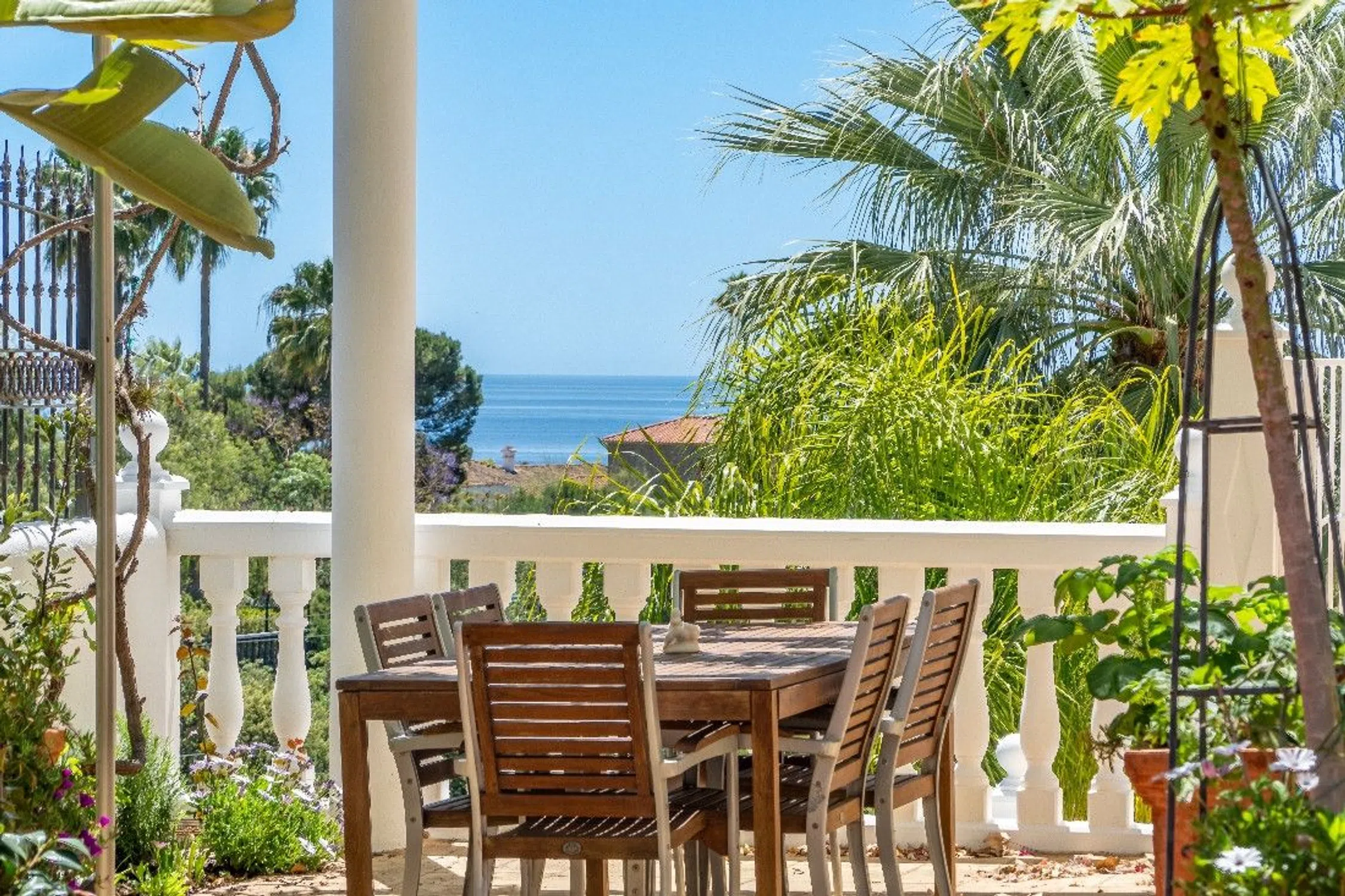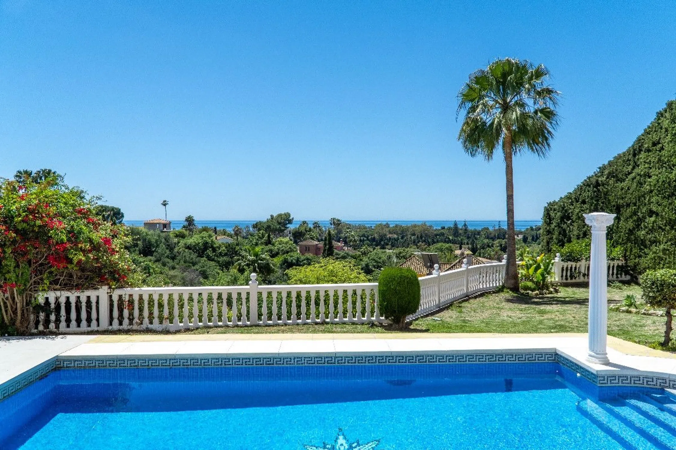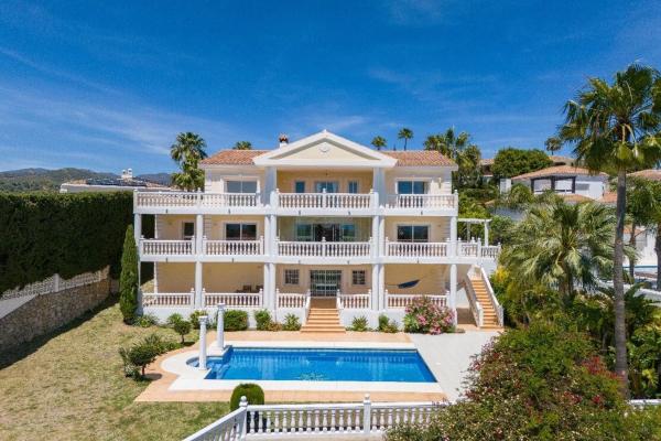 Impresionante villa de lujo con vistas panorámicas al mar y a la montaña en Elviria Ubicada en una de las zonas más prestigiosas de Marbella, esta extraordinaria villa combina elegancia clásica con confort moderno. Situada a pocos minutos de las mejores playas y centros comerciales de Elviria, la propiedad ofrece privacidad, amplitud y unas vistas inigualables del Mediterráneo y las montañas. La villa cuenta con un amplio salón lleno de luz natural que se abre a una espectacular terraza acristalada con cortinas de cristal, ideal para disfrutar del sol y de las vistas durante todo el año. En el mismo nivel encontramos una gran cocina completamente equipada con acceso independiente y una habitación actualmente utilizada como despacho, fácilmente convertible en dormitorio. En la planta superior se encuentran tres amplios dormitorios, todos con baños en suite y terrazas privadas con vistas panorámicas al mar y la montaña. El sótano ofrece un espacio multifuncional ideal para un apartamento de invitados, gimnasio o sala de cine. El exterior destaca por su hermoso jardín privado, perfectamente cuidado, con piscina y orientación sur. Garaje cerrado para un coche y amplio espacio de aparcamiento adicional.