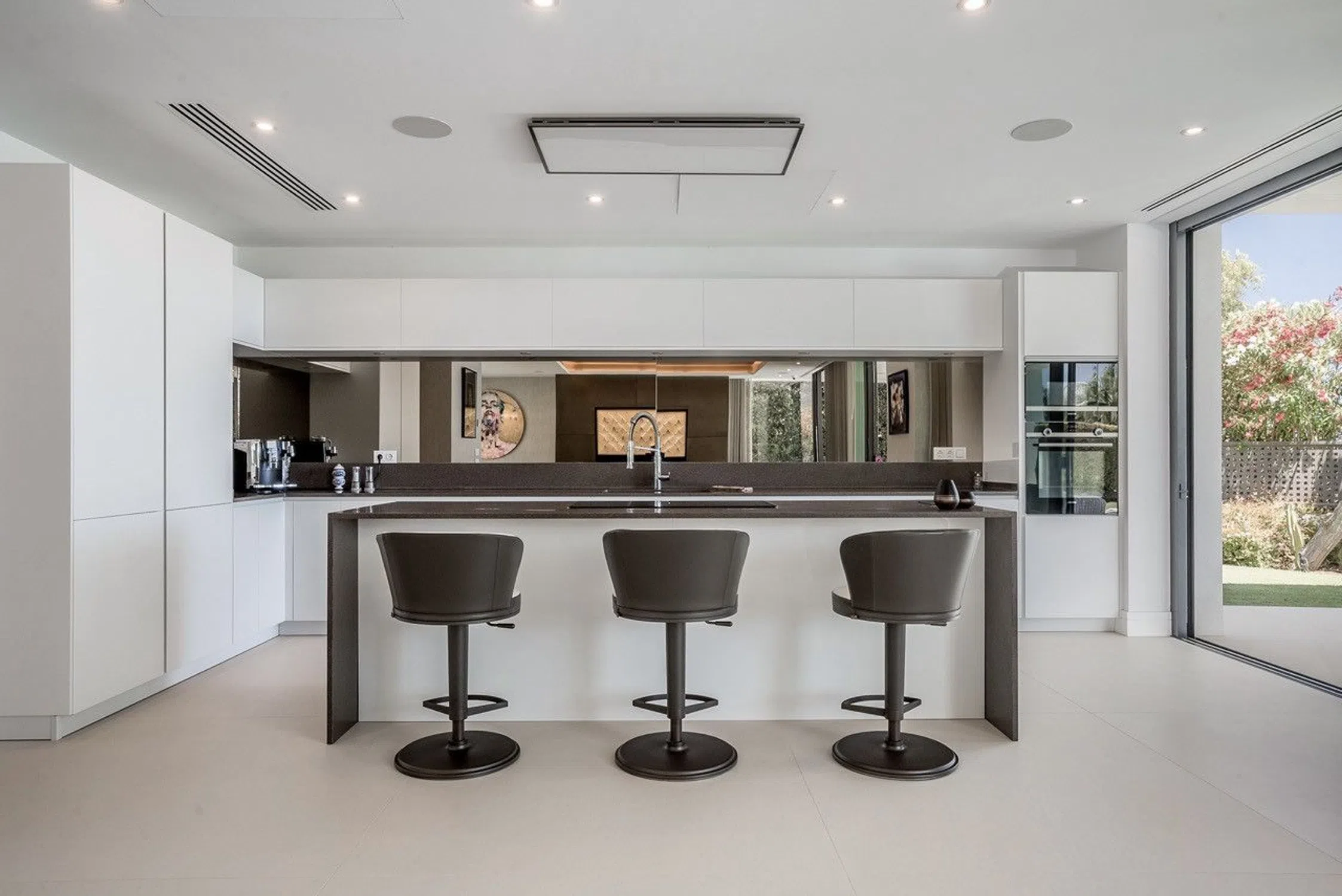 Esta villa excepcional se encuentra enclavada dentro de una exclusiva comunidad cerrada en la prestigiosa Milla de Oro de Marbella. Situado en una generosa parcela orientada al sur, la propiedad se baña a la luz del sol natural y disfruta de impresionantes vistas panorámicas al mar desde ambos pisos, creando un refugio costero sereno y lujoso. Para el futuro propietario, se incluirá una nueva cocina Siematic, reemplazando la existente. El comprador también tiene la oportunidad exclusiva de personalizar el estilo, materiales y electrodomésticos para que coincidan perfectamente con sus preferencias personales. Diseñado por reconocidos arquitectos Cristian Larrain K. y Rodolfo Nonini, la villa se encuentra como un ejemplo llamativo de la excelencia arquitectónica moderna. Su fachada blanca, líneas simétricas y vegetación exuberante crean una estética elegante y acogedora. La terraza de la azotea corona la residencia, que ofrece vistas al mar ininterrumpidas y la emblemática montaña La Concha. Los espacios exteriores son igualmente impresionantes, con impresionantes vistas al mar, piscina privada, terrazas elegantes y un jardín meticuloso, ideal tanto para la relajación como para el entretenimiento. En su interior, la casa exude la sofisticación contemporánea. La sala de estar de planta abierta está mejorada por la iluminación de techo ambiente y una paleta de color neutro suave, creando un ambiente cálido y acogedor. El comedor fluye sin problemas en la cocina y las zonas sociales, lo que lo hace perfectamente adecuado tanto para la vida cotidiana como para ocasiones especiales. Un sistema de sonido interior / exterior de alta gama garantiza un entretenimiento sin esfuerzo en todas partes. La cocina en sí es espaciosa, funcional y bellamente designada, con un amplio almacenamiento, amplias mesas de trabajo y un acogedor rincón de desayuno. Cada dormitorio es un retiro privado, con acabados refinados y su propio baño en suite. La suite principal, ocupando todo el nivel superior, ofrece lo último en privacidad y comodidad, completa con walk-in closet, bañera independiente, doble vanidad, y ventanas de suelo a techo enmarcando espectaculares vistas al mar. Otras comodidades incluyen una sala de entretenimiento de última generación, cine en casa, bodega, gimnasio, ascensor y garaje de tres coches, todo pensado para una vida de lujo moderna. Para una paz mental completa, la comunidad proporciona personal a tiempo completo que supervisa el mantenimiento de la piscina y los jardines. También se dispone de servicios opcionales de gestión de la propiedad, garantizando un estilo de vida verdaderamente llave en mano. Este barrio sereno y seguro ofrece un equilibrio raro de tranquilidad y comodidad. La villa se encuentra a poca distancia de la playa y de la vibrante Milla de Oro de Marbella. Los residentes disfrutan de la proximidad a lugares de comedor y estilo de vida de clase mundial como Puente Romano, Alba por Serafina, Besaya Beach y el elegante Boho Club. Esto es más que un hogar – es una mezcla perfecta de elegancia, comodidad y exclusividad, donde cada detalle ha sido cuidadosamente curado para ofrecer lo mejor en la vida mediterránea.