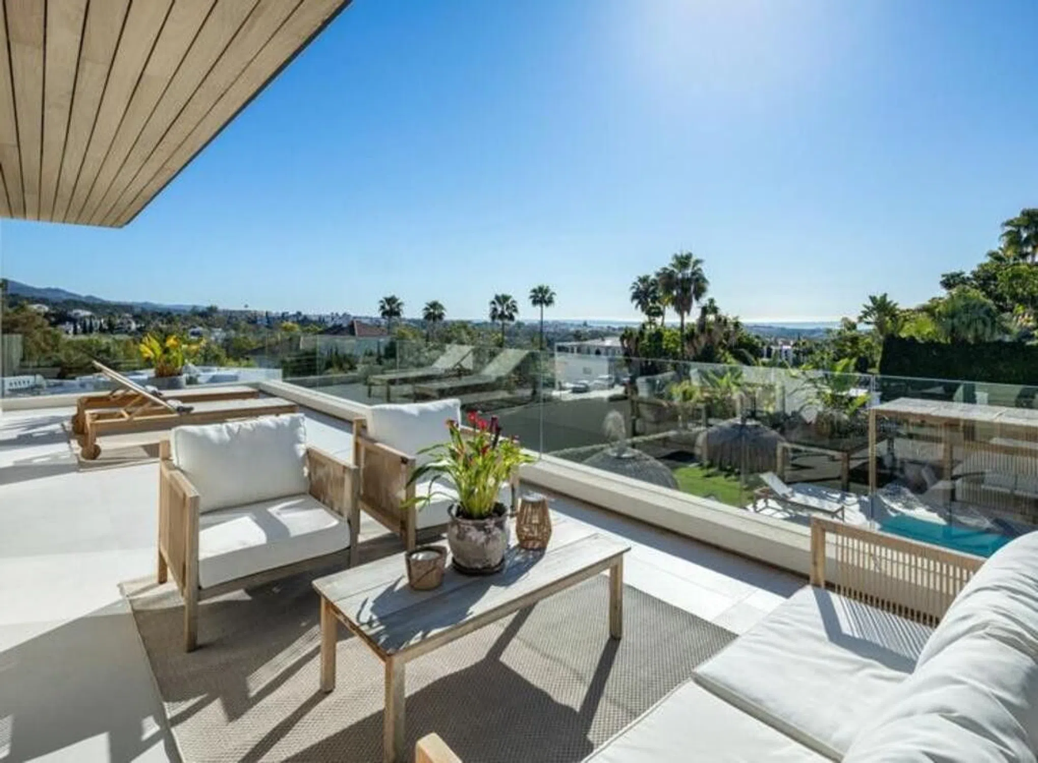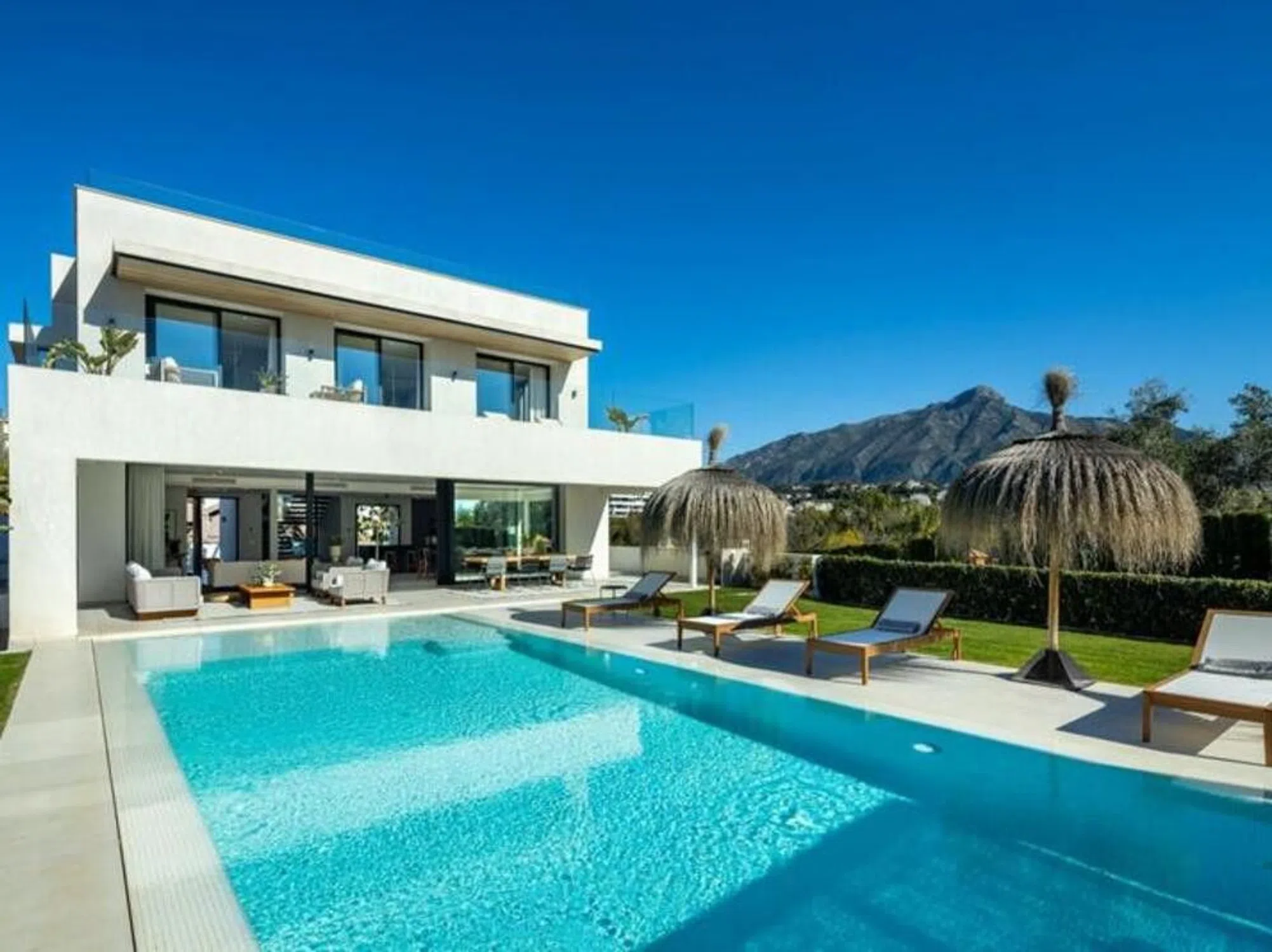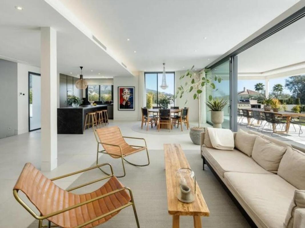 Esta impresionante villa contemporánea, situada en la prestigiosa urbanización residencial de La Cerquilla, ofrece una combinación excepcional de lujo, estilo y comodidad. Ubicada en el corazón del célebre Valle del Golf de Marbella, la propiedad disfruta de cautivadoras vistas al mar y a las montañas circundantes, permaneciendo a escasos minutos de las mejores comodidades y reconocidos campos de golf. Su diseño arquitectónico moderno se define por líneas limpias y amplios ventanales que inundan los interiores de luz natural y crean una transición perfecta entre los espacios interiores y exteriores. La planta principal presenta una elegante distribución de concepto abierto que equilibra la sofisticación con la funcionalidad. La cocina de diseño es el centro neurálgico del espacio, equipada con una isla central de mármol y electrodomésticos integrados de alta gama, lo que la convierte en un ambiente visualmente impactante y altamente funcional. Las puertas correderas de suelo a techo se abren a generosas terrazas diseñadas para el disfrute absoluto, ideales para relajarse, comer y entretenerse durante todo el año. Las áreas exteriores están cuidadosamente planificadas para complementar el estilo de vida mediterráneo. Amplias zonas de descanso, una atractiva piscina privada y una elegante pérgola enmarcan el paisaje, mientras que la barbacoa integrada y la cocina exterior elevan las reuniones al aire libre. Una escalera flotante escultórica conduce a la planta superior, donde cinco dormitorios de estilo ofrecen privacidad y confort. La suite principal resulta especialmente impresionante, con acceso directo a una terraza, amplios espacios y un refinado baño en suite que encarna la elegancia moderna. La planta inferior añade un nivel adicional de lujo, con un espacio de entretenimiento dedicado que incluye un bar personalizado y una sala de televisión, perfecto para recibir invitados o relajarse con estilo. La iluminación cuidadosamente seleccionada en toda la propiedad realza el ambiente, creando una atmósfera cálida y acogedora que se extiende a las terrazas cubiertas por la noche. La villa se accede a través de un camino privado con entrada segura y cochera, lo que garantiza exclusividad y tranquilidad. Esta extraordinaria residencia es la elección ideal para quienes buscan vivir en un entorno contemporáneo de primer nivel en uno de los barrios más codiciados y distinguidos de Marbella.