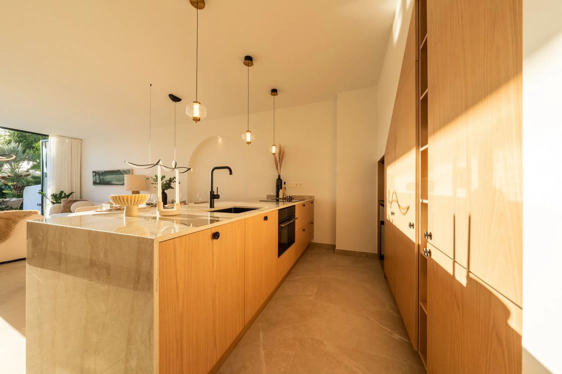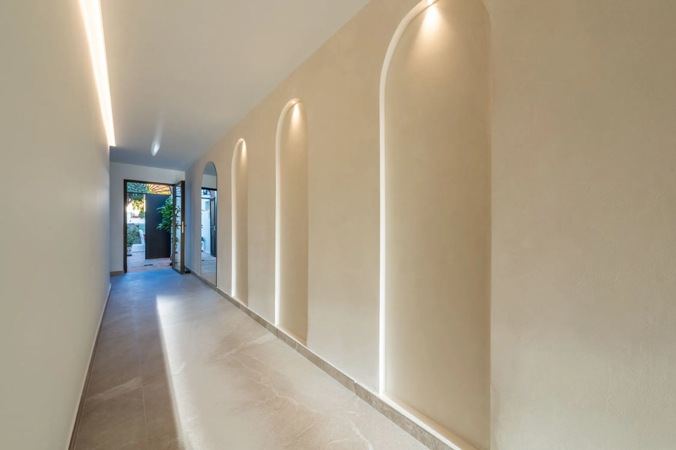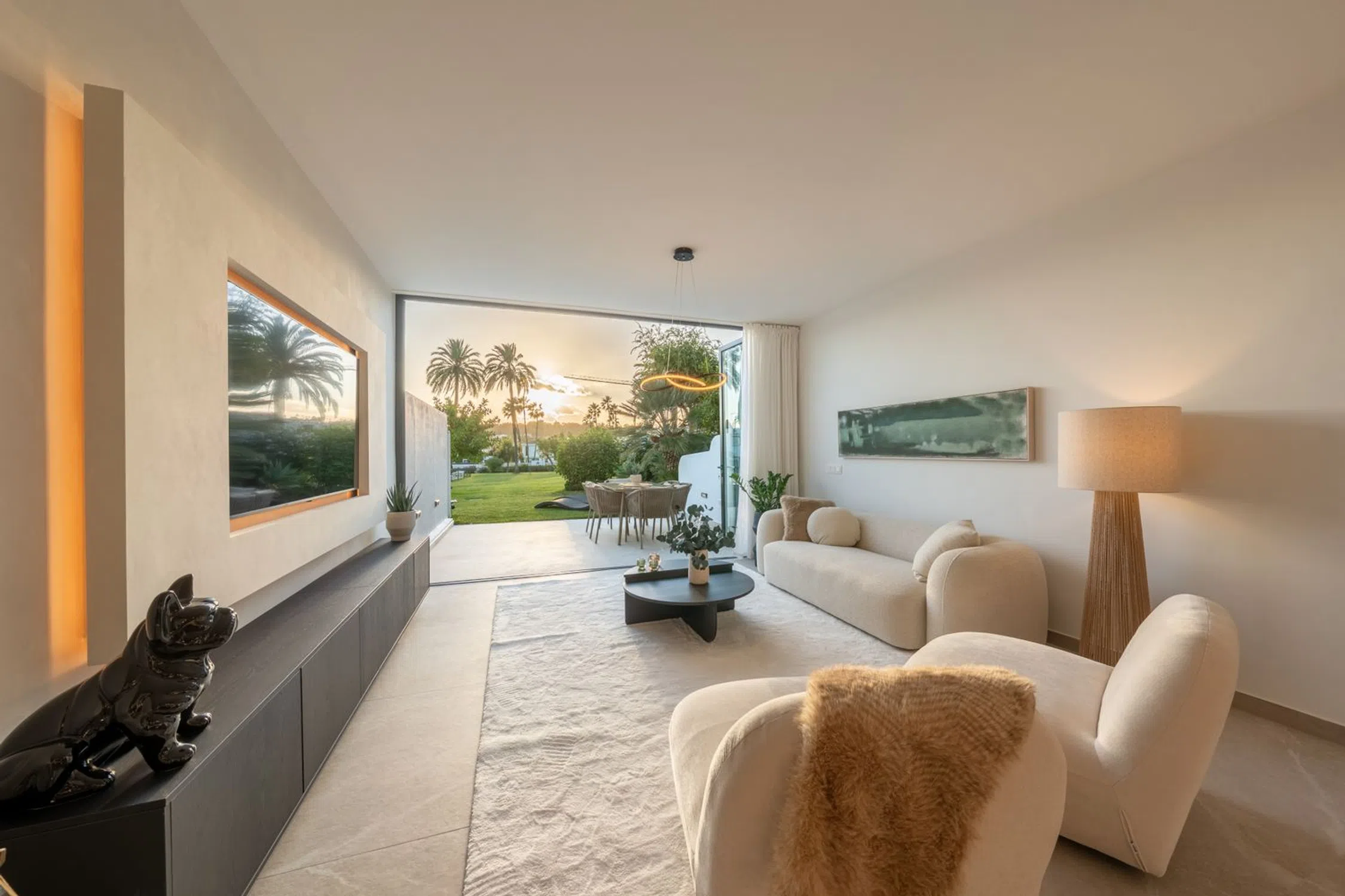 Descubra la sofisticación contemporánea en esta casa adosada totalmente renovada de 4 dormitorios, situada en la exclusiva comunidad cerrada de La Rinconada, en el corazón del Valle del Golf de Marbella. Diseñada con una estética mediterránea moderna, la vivienda combina elegancia, luz natural y calidez. La zona de estar de planta abierta cuenta con una cocina a medida con acabados en madera natural y mármol, que se integra perfectamente con el comedor y el salón. Las amplias puertas de cristal se abren a una terraza privada y a un jardín paisajístico — un espacio ideal para disfrutar del estilo de vida al aire libre. En la planta superior, la suite principal y los dormitorios de invitados ofrecen un ambiente sereno y elegante, con materiales de alta calidad y tonos suaves y neutros. Rodeada de exuberantes jardines tropicales y una preciosa piscina comunitaria, esta casa ofrece la combinación perfecta de tranquilidad y comodidad — a pocos minutos de campos de golf de primer nivel, tiendas exclusivas y la vibrante energía de Puerto Banús. Una joya lista para entrar a vivir que encarna la esencia del estilo de vida contemporáneo de Marbella.