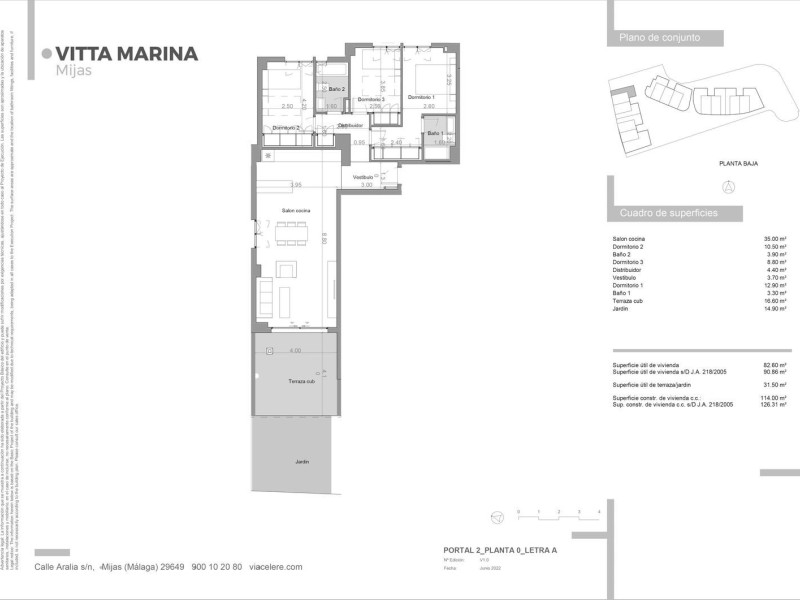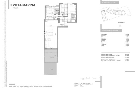 Vitta Marina to zamknięty, nowoczesny i funkcjonalny kompleks mieszkalny, idealne miejsce do życia. Projekt obejmuje 72 domy z 2, 3 i 4 sypialniami, rozmieszczone na parterze, pierwszym, drugim piętrze i penthouse'ach. Wszystkie domy są zorientowane na południe lub południowy zachód i wielu z nich mają widok na morze. Dodatkowo, na parterach znajdują się przyjemne ogrody, a na penthouse'ach przestronne tarasy. Wszystkie domy są wyposażone w co najmniej jedno miejsce parkingowe i piwnicę. Każdy detal został starannie przemyślany, aby uczynić ten projekt Twoim przyszłym domem. Oferujemy atrakcyjne domy z miejskim, ekskluzywnym i funkcjonalnym designem, wyposażone w wysokiej jakości wykończenia. Vitta Marina to miejsce do relaksu, położone w mieście Mijas między La Cala de Mijas a Fuengirolą, zaledwie 2 minuty spacerem od plaży Marina. Ten kompleks oferuje liczne możliwości rekreacji i usług, w tym różne pola golfowe, w tym "Chaparral Golf Club", oddalone o mniej niż dwa kilometry od kompleksu, centra handlowe, supermarkety, restauracje, centrum medyczne i kilka aptek. La Cala de Mijas jest położona w unikalnym i dobrze skomunikowanym środowisku. Jest połączona z autostradą Costa del Sol A-7 i znajduje się bardzo blisko dostępów do płatnej autostrady AP-7. Dodatkowo, jest to mniej niż 25 minut jazdy od międzynarodowego lotniska w Maladze i 40 minut jazdy od dworca kolejowego w Maríi Zambrano. Ważne atrakcje turystyczne, takie jak Puerto Banús, historyczne centrum Marbelli i Fuengirola, również znajdują się w pobliżu.