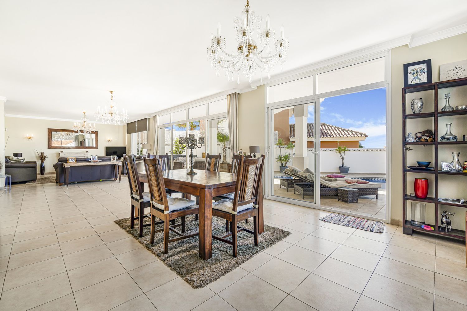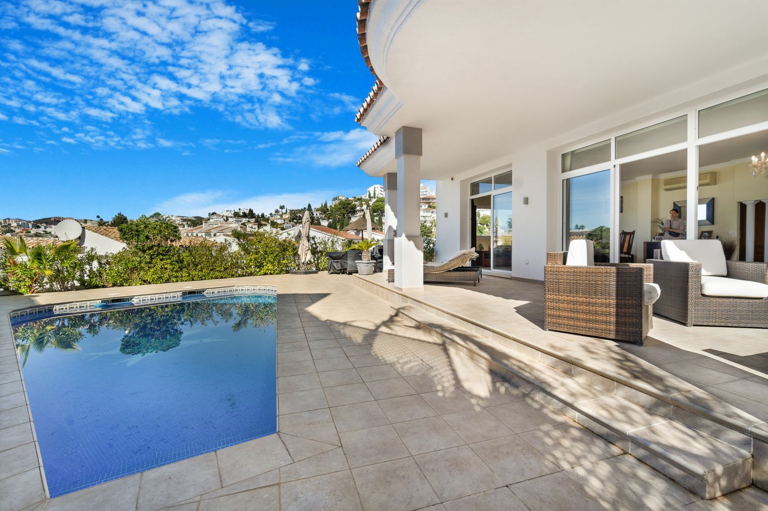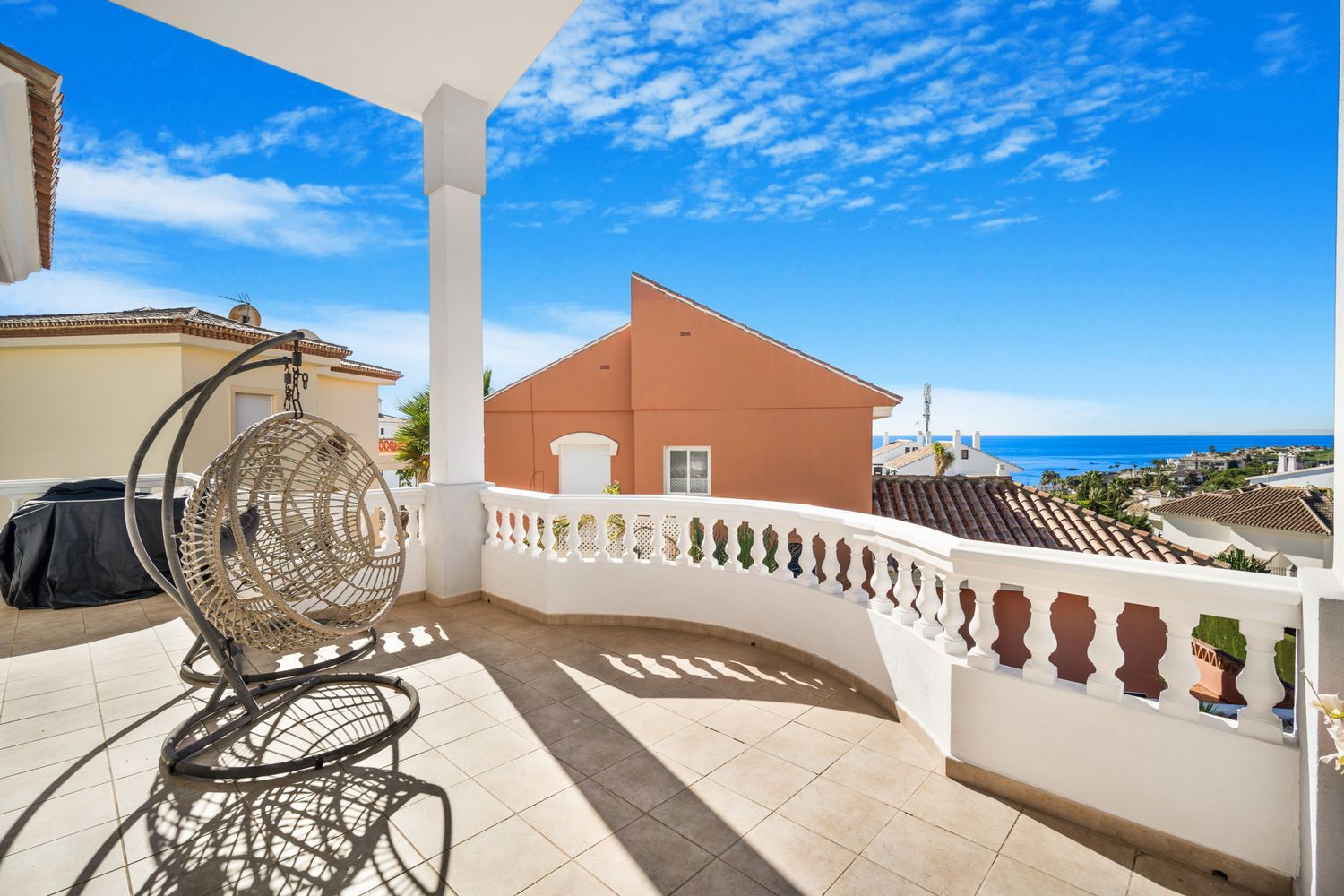 Fantástico chalet de cuatro dormitorios, con orientación suroeste situado en una zona residencial de Riviera Del Sol; una ubicación muy deseable con increíbles vistas al mar y rodeado de campos de golf, bares, restaurantes y sólo diez minutos a pie de la playa y a sólo 25 minutos en coche del aeropuerto de Málaga. La propiedad en el nivel de entrada tiene un amplio hall de entrada; sala de estar y comedor de planta abierta; cocina totalmente equipada; suite de invitados; y un aseo de invitados. Desde este nivel tiene acceso a la terraza y jardín con piscina privada, jacuzzi y mesa de billar. La primera planta tiene la suite principal con acceso a una amplia terraza con increíbles vistas al mar, y un paseo en armario; y dos suites de invitados. El nivel inferior de la propiedad conduce al garaje privado que puede contener hasta ocho coches. Otras características incluyen aire acondicionado frío y caliente, calefacción por suelo radiante en el salón y baños, armarios empotrados, alarma, cámaras CCTV y suelos de mármol. Una fantástica propiedad para vivir todo el año o alquileres a corto y largo plazo.
