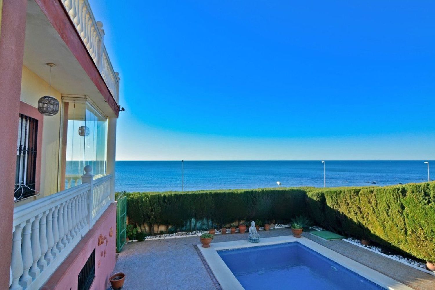 Estamos felices de presentarles esta impresionantes Villa de lujo en primera línea de playa, ubicada en la inmejorable zona del Faro, en Mijas. Esta preciosa villa está ubicada en una zona estratégica con fácil y rápida salida a la autovía. Cuenta con una parcela de 645 metros de parcela y 369 metros cuadrados útiles de vivienda.La casa se divide en dos plantas más un semisótano. Esta preciosa villa en su primera planta encuentra, una bonita entrada, amplio salón y cocina independiente1 baño y 1 dormitorio o despacho, desde esta planta tienes acceso a la terraza con impresionantes vistas al mar y piscina privada con zona de bbq.En la segunda planta encuentras 3 dormitorios, el dormitorio principal cuenta con su baño en suite y salida a una terraza con vistas panorámicas al mar.Además, cuenta con un semisótano totalmente diáfano con cocina.Cuenta también con un amplio garaje para 2 coches. Para más información y visita no duden en contactar con nosotros.