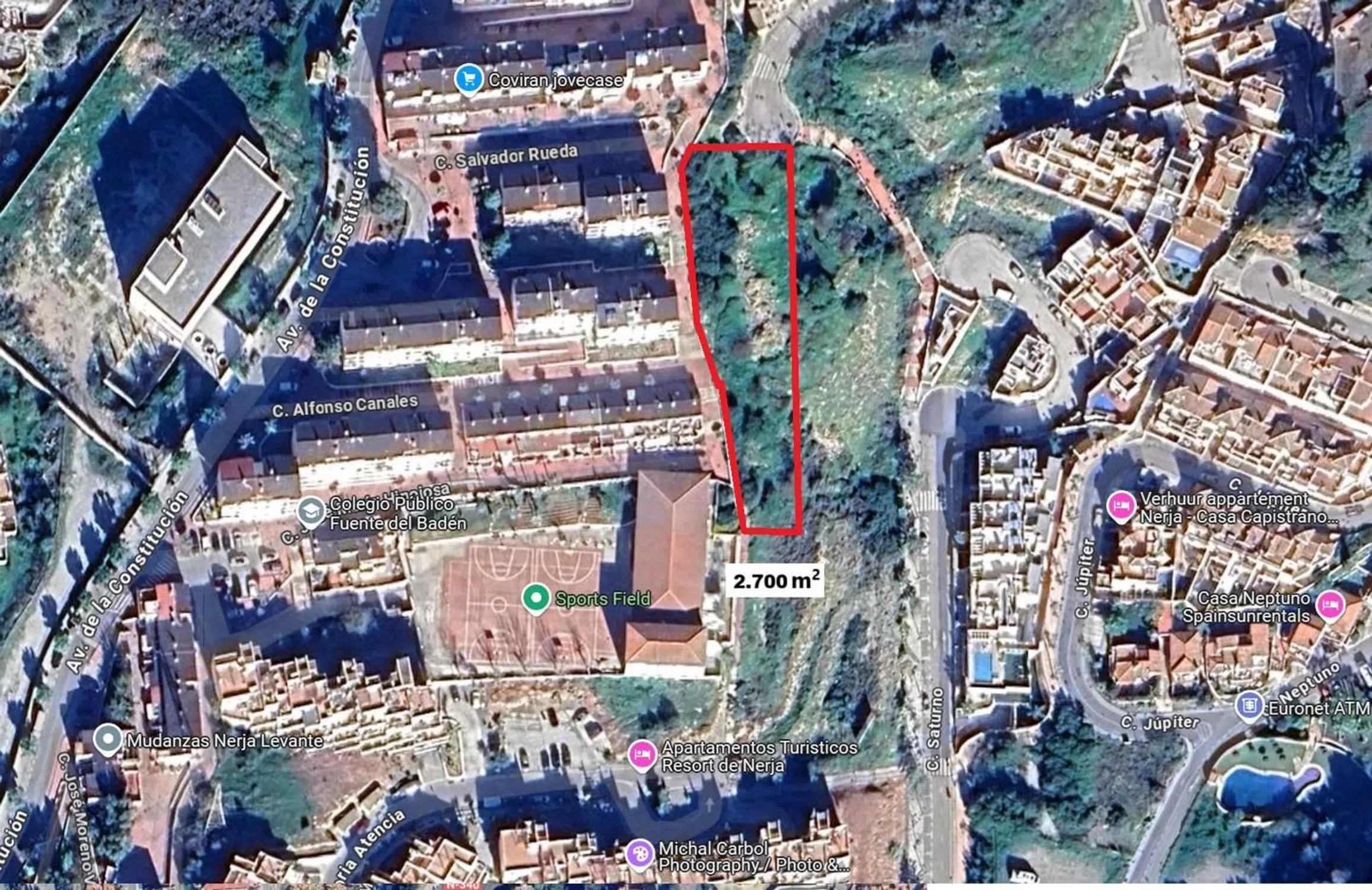 Terreno Urbano Residencial de 2.700m². URBANA: parcela 4-1 situada en el término municipal de Nerja, en el pago Fuente del Badén, procedente de la conocida como Cañada del Almendro, integrante del sector UE-17 de Nerja, con una superficie de 2.700m². USO: residencial y turístico. TECHO EDIFICABLE: 2.700m². Número máximo de viviendas: 27 Para cualquier duda, póngase en contacto con nosotros y le atenderemos encantados. Alcanzar sus sueños, nuestra meta. Más información en Astrida Real Estate.