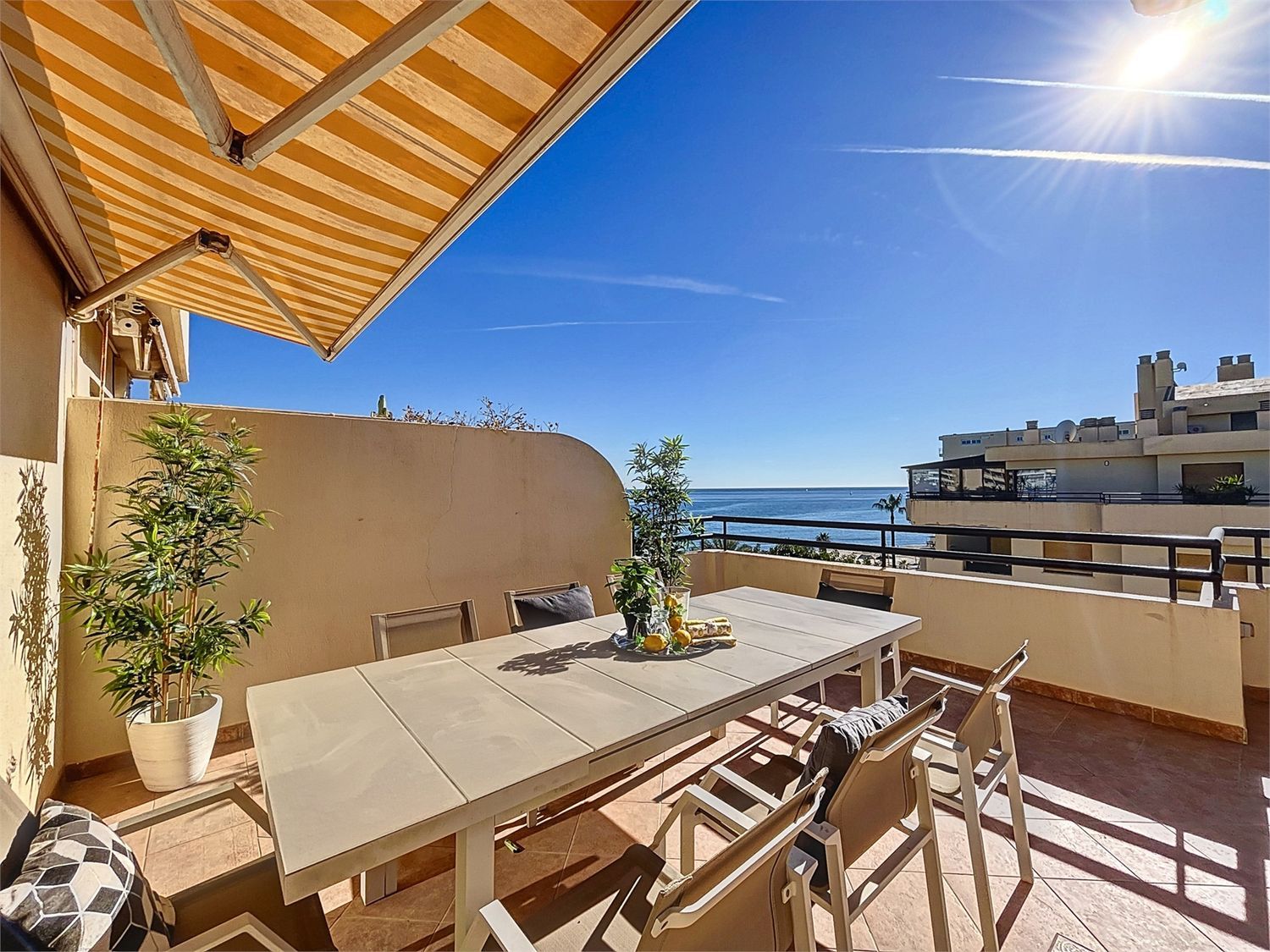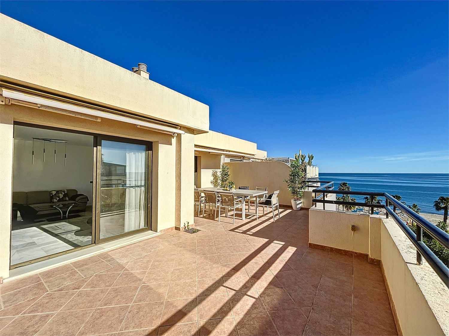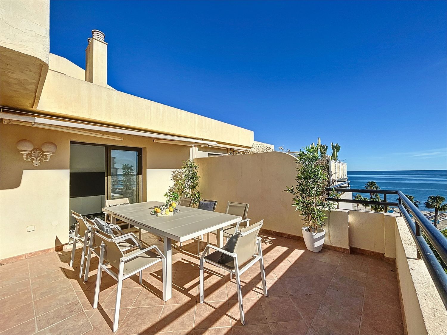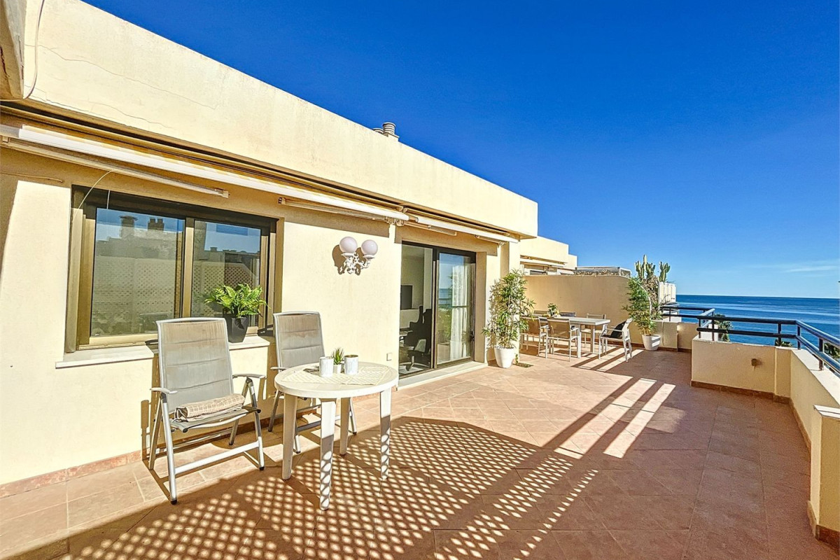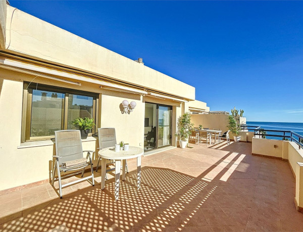 Situado en primera línea de playa de Torremolinos, este ático ofrece un estilo de vida costero privilegiado. Destaca su gran terraza con amplias vistas al mar. La cocina, aunque espaciosa, también ofrece una vista panorámica del Mediterráneo y las montañas de Málaga.La propiedad incluye dos dormitorios, dos baños y una habitación adicional adaptable para oficina o espacio para invitados. Los aspectos prácticos se cubren con garaje y trastero. Los beneficios de la comunidad incluyen una piscina, espacios verdes y una cancha de tenis.Este lugar tranquilo no compromete la comodidad, con bares, tiendas y restaurantes cercanos. Es un equilibrio entre tranquilidad y accesibilidad, lo que hace de este ático en Torremolinos un refugio deseable.