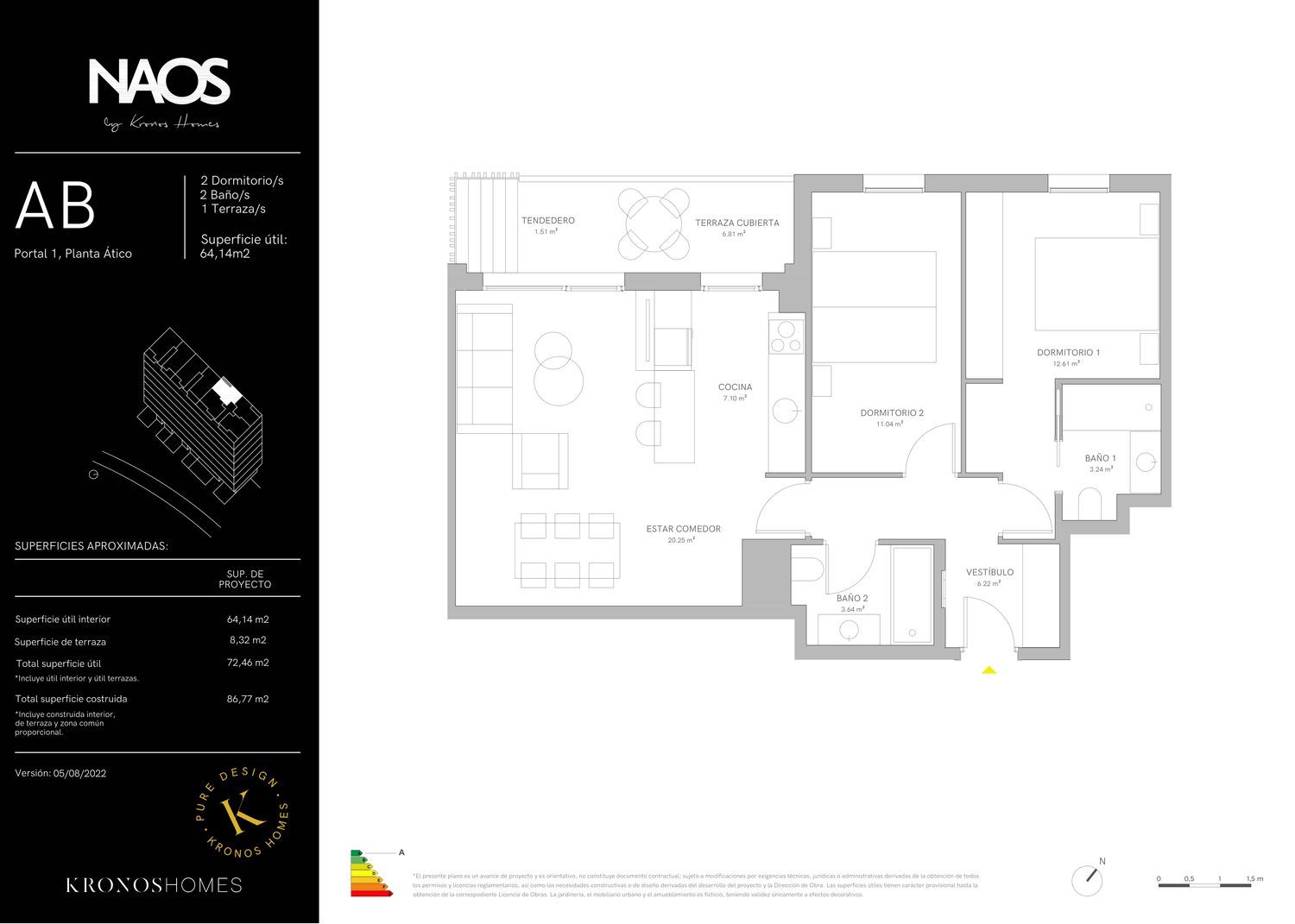 Kronos Homes ha elegido Barañain para crear NAOS, un exclusivo proyecto que aúna su carácter urbano y cosmopolita con la riqueza paisajística del rio Arga. A la calidad de su emplazamiento, rodeado de naturaleza y junto al parque fluvial, se suma su cercanía al centro y todos los servicios de un vecindario consolidado, con comercios, colegios y un acceso privilegiado a las principales vías de comunicación. Un punto de partida inmejorable para hacer realidad un residencial innovador, llevado a cabo en colaboración con empresas locales y comercializado por Abaigar.En sus viviendas de 2, 3 y 4 dormitorios, el diseño impregna cada detalle. Los interiores se caracterizan por sus espacios luminosos, gracias a la gran superficie acristalada y a una cuidada orientación. Además en cada una de ellas la cocina y el salón interactúan entre sí como un espacio abierto de convivencia y el resto de estancias disfrutan de mayor privacidad. En cuanto a su tipología, cabe destacar el compromiso de Kronos Homes por ofrecer espacios en los que disfrutar de la vida al aire libre y las viviendas disponen jardines en planta baja y amplias terrazas en las viviendas en altura; además cuentan con una cuidada selección de materiales y equipamientos En cuanto a las zonas comunes, destaca el espacio comunitario para guardar las bicicletas y la sala polivalente comunitaria con cocina fría, perfecta para organizar eventos y actos sociales. Por último, además de todas las comodidades y de un diseño inconfundible, Naos cuenta con una calidad de materiales y acabados al nivel de los más exigentes estándares de construcción. Muestra de ello es su certificación energética A, lo que garantiza una eficiencia óptima y el máximo confort. En resumen, un proyecto singular cuyo diseño y filosofía marcan la diferencia en una de las zonas con mayor proyección de Pamplona.NOTA: Las imágenes contenidas solamente tienen carácter orientativo, por tal motivo son susceptibles de modificación por motivos técnicos, jurídicos o de cualquier otra índole. El amueblamiento reflejado tiene únicamente efecto decorativo y no constituye documento contractual. Igualmente, el equipamiento de las viviendas será el indicado en la correspondiente memoria de calidades.