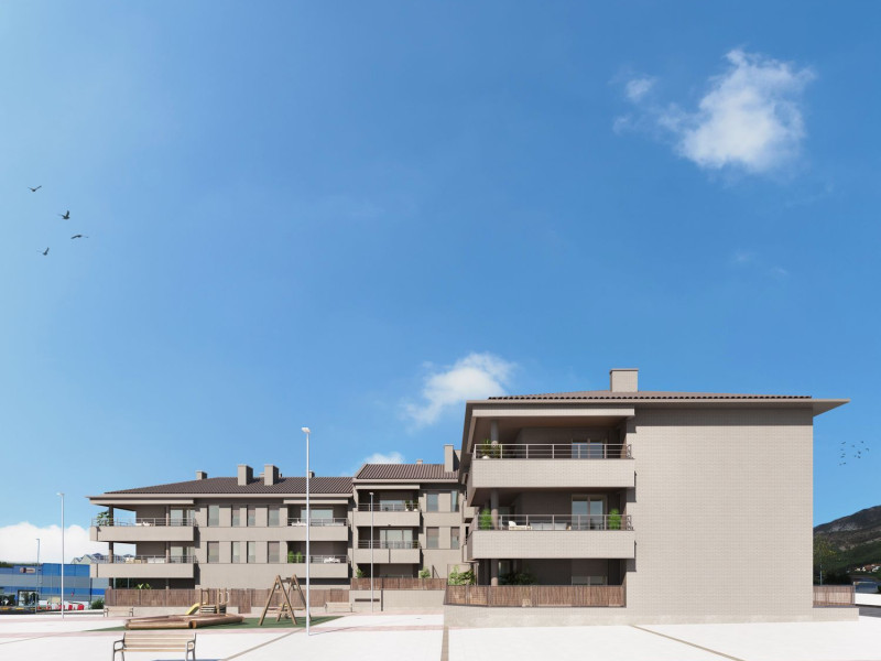 Situada al sur de Irurtzun, destaca por la amplitud de espacios del entorno, la orientación y las vistas, viviendas donde la luminosidad, amplitud y confort son los principales protagonistas, que se completan con amplias terrazas exteriores en continuidad con los espacios interiores en plantas elevadas. Viviendas, la mayoría pasantes que permite una ventilación cruzada para aprovechar al máximo la luz natural. Cuenta con viviendas de 2, 3 y 4 dormitorios que se adaptan a todas las necesidades familiares.Según tipología de viviendas la cocina puede estar integrada en el salón comedor o de forma independiente con óptima distribución de espacio y gran capacidad de almacenaje con diseño en líneas rectas con varias combinaciones tanto en muebles como en encimeras.Baños equipados con mueble de lavabo, espejo, inodoro, ducha extraplana termostática en ambos baños.Armarios empotrados en habitación dormitorio principal y vestíbulo según tipología de vivienda, con acabado exterior en blanco, acabado interior con forro, balda maletero y balda para colgar.Terrazas con iluminación mediante focos led empotrados. En terrazas principales punto de corriente estanco y toma de agua.Persianas motorizadas en salón.Garajes y trasteros vinculados en el sótano del edificio.El edificio dispondrá de Calificación Energética A.