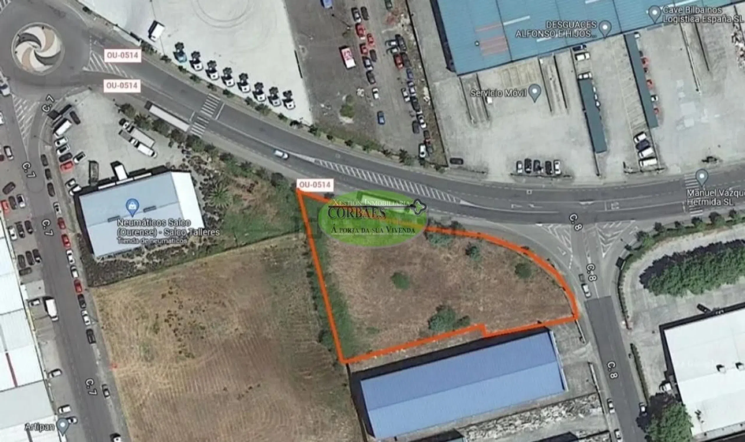Terreno en venta en el polígono industrial de san Cibrao. Parcela a dos calles de aproximadamente 2700M2 de los cuales urbanizables serían aprox. 1900M2 Muy visible y zona de mucho transito ya que la fachada da completamente a la calle principal del polígono. Ideal para cualquier tipo de negocio.