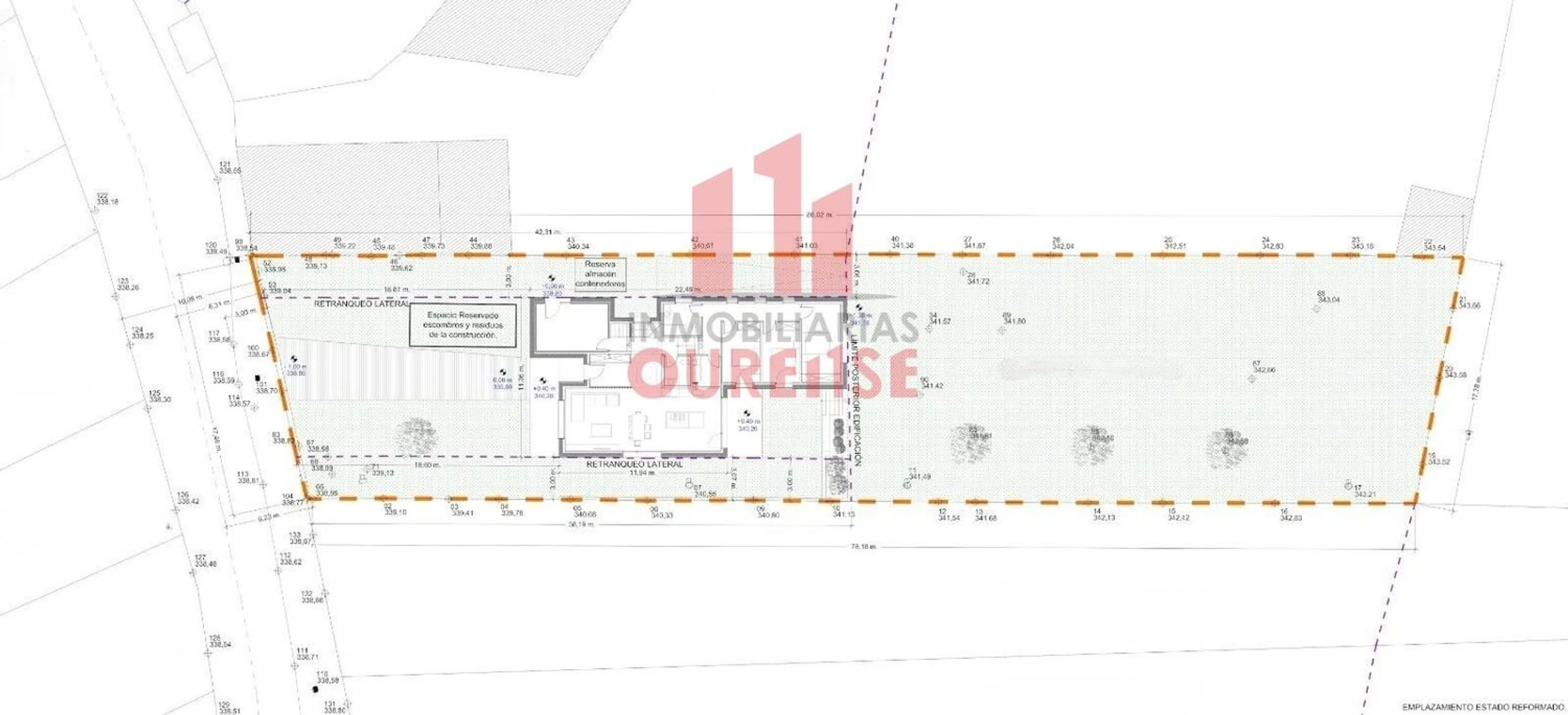 REF. 5581 PARCELA CON PROYECTO EN LA CASTELLANA (SAN CIBRAO DAS VIÑAS - OURENSE). Se vende parcela de 1.490 m2 aproximadamente situada en la zona de la Castellana. Totalmente llana, es edificable en los 700 m2 más próximos a la fachada de la finca, lo que permite disponer de total privacidad en sus más de 700 m2 de la parte posterior. Destacar que la parcela está inscrita en el Registro de la Propiedad (siendo apta para hipoteca), que se encuentra a 15 minutos del centro de Ourense, que cuenta con pozo y parada de autobús urbana en la puerta de la finca, así como luz, agua de la traída y alcantarillado. Además, el precio incluye proyecto de arquitectura visado en el año 2024 de una vivienda unifamiliar de planta baja de 180 m2 valorado en 9.000 € (ver infografía y vídeo). Si quieres ver esta propiedad, no dudes en acudir a nuestras oficinas de Rúa Ensino nº1, Bajo (O Couto - Ourense), llamarnos al o enviarnos un correo electrónico a. Estaremos encantados de atenderte. Más información en nuestra página web Síguenos en las principales redes sociales.