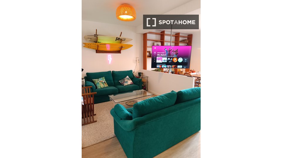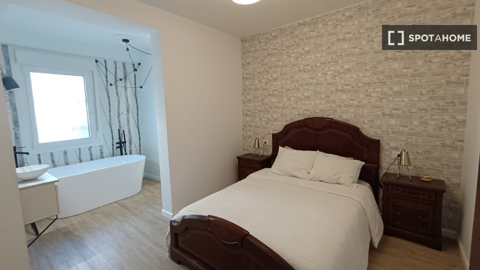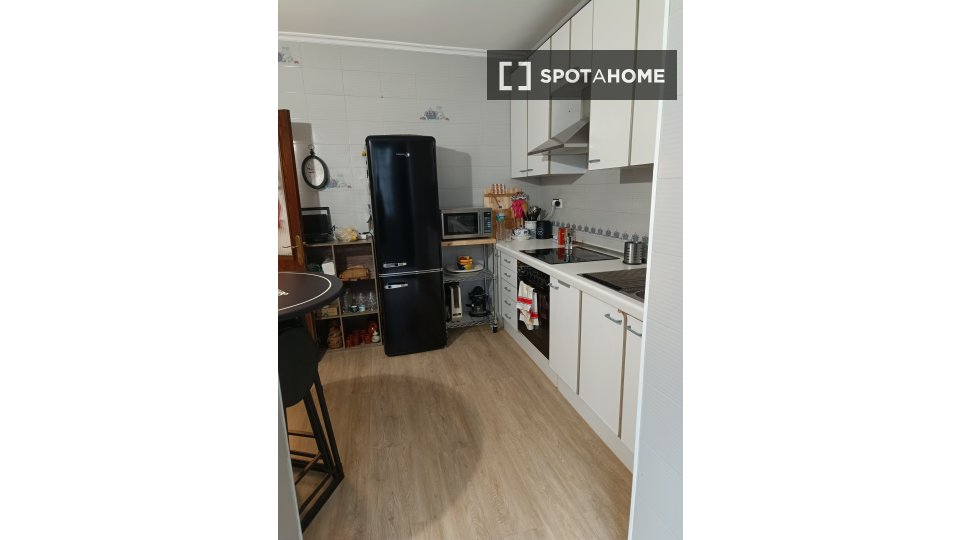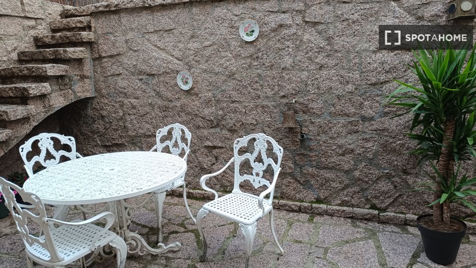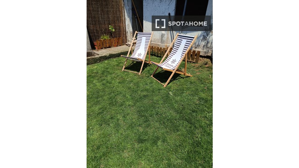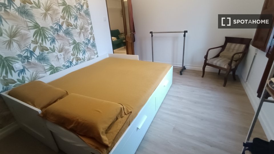 Pokój do wynajęcia w umeblowanym mieszkaniu z 2 sypialniami na Rúa Tanque. Nieruchomość znajduje się na parterze. Na terenie obiektu znajduje się telewizor Smart TV, wspólny ogród i wspólne patio.