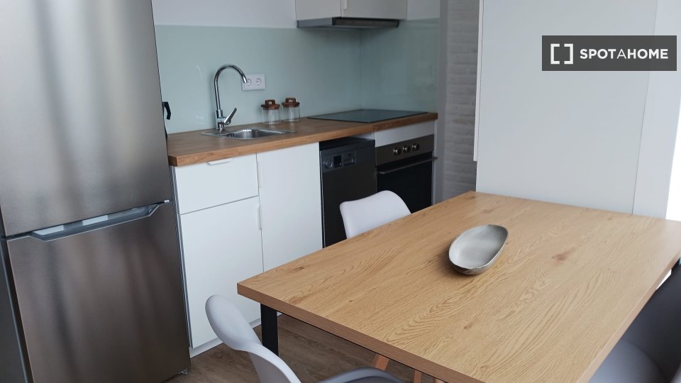 Umeblowane studio do wynajęcia na Praza Dos Pescadores. Nieruchomość znajduje się na 1. piętrze budynku bez windy. Nieruchomość obejmuje wyposażoną kuchnię, zmywarkę i pralkę.