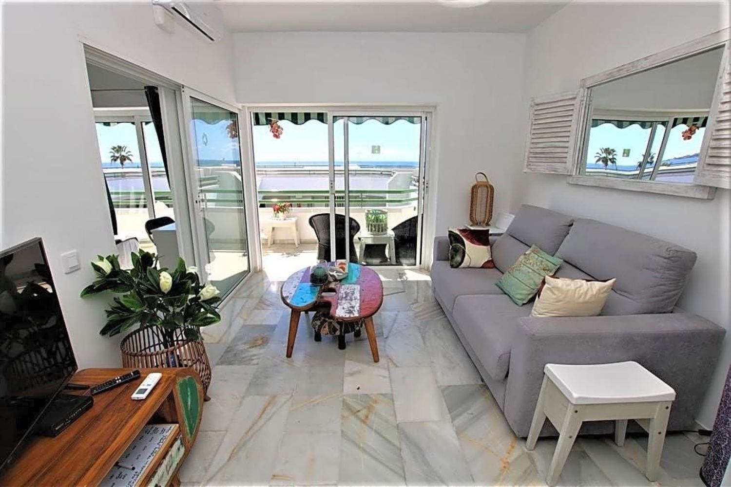 Se vende precioso piso reformado con vistas al mar en la zona prime de Tenerife, la zona del Duque, en primera línea de costa en el edificio Altamira.La propiedad ha sido remodelada en 2 dormitorios y ofrece una terraza con vistas al mar, salón, cocina y un baño con ducha.El complejo dispone de piscina comunitaria climatizada, jardín, ascensores y acceso directo a la playa del Duque. En los alrededores hay restaurantes, lugares de ocio, supermercados, taxis, etc.Una excelente opción como residencia y/o inversión.
