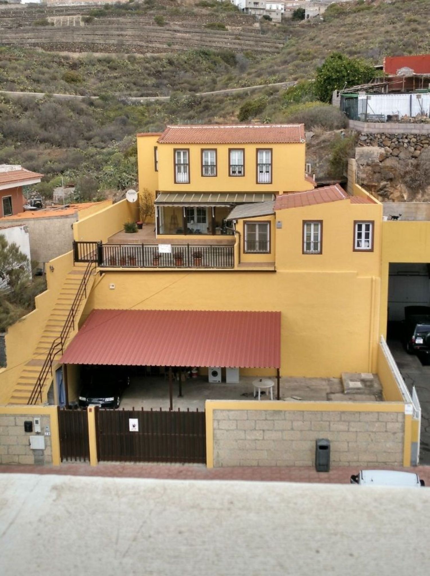 Fantástica Casa Unifamiliar en San Miguel de Abona. Esta hermosa propiedad se encuentra en una parcela de 500 m2 y consta de dos plantas. Con una superficie construida total de 211,90 m2, esta casa cuenta con cuatro dormitorios, dos cuartos de baño y un aseo. Además, ofrece un amplio salón-comedor, una biblioteca, un despacho y un cuarto de lavadora. También incluye un almacén y una galería exterior cerrada de 26,60 m2. Para mayor comodidad, esta casa cuenta con un garaje cubierto de 54,20 m2 y un área sombreada para barbacoa de 14,40 m2. Disfruta de una terraza soleada con suelo de madera y una galería cubierta que rodea parte de la casa. La cocina es independiente y cuenta con una terraza trasera y una zona de barbacoa. En su interior, encontrarás una hermosa escalera de madera de nogal y tres amplias habitaciones con suelo y techos revestidos en madera. Además, todas las habitaciones disponen de armarios empotrados. El baño completo cuenta con bañera y ducha. Para mayor comodidad, la casa cuenta con calefacción con radiadores, aire acondicionado en todas las habitaciones y sistema de alarma. Los amplios ventanales permiten una gran entrada de luz natural. Además, esta propiedad ofrece la posibilidad de construir una planta baja más uno en la planta baja urbana. No pierdas la oportunidad de adquirir esta increíble casa unifamiliar en San Miguel de Abona. ¡Contáctanos ahora!