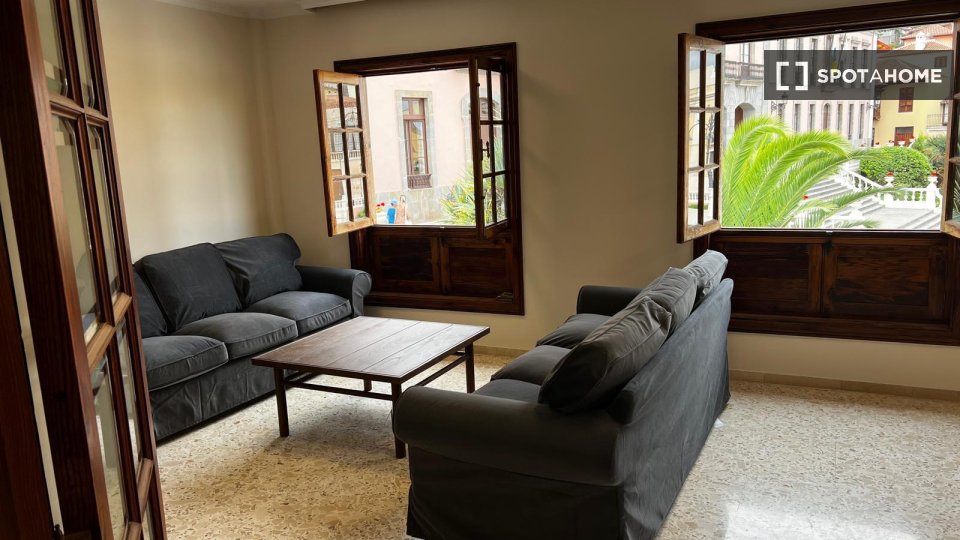Spotahome prezentuje ten wspaniały pokój w 5-pokojowym mieszkaniu wieloosobowym na zewnątrz, położonym w urokliwej miejscowości La Orotava, Santa Cruz de Tenerife. W pełni umeblowany obiekt oferuje wspólne udogodnienia, takie jak zmywarka i pralka, wyposażona kuchnia i telewizor. Dodatkowo, wszystkie rachunki są wliczone w cenę. Ograniczenia: zakaz wprowadzania zwierząt i palenia. Doskonała lokalizacja z balkonem, idealna na relaks.