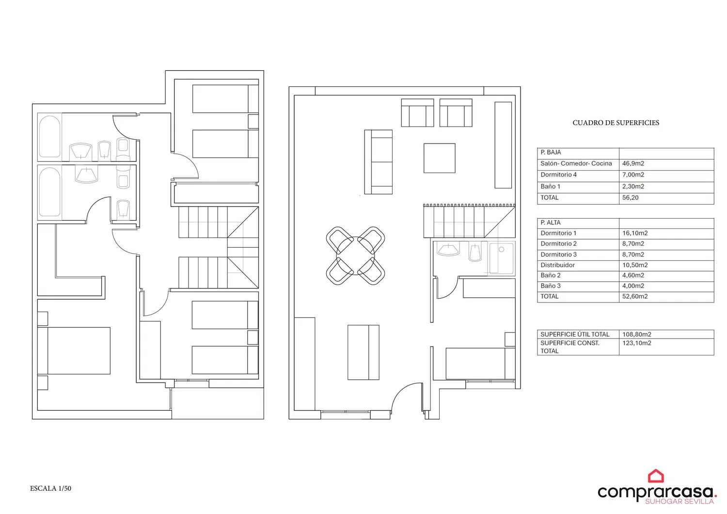 Wyobraź sobie doskonałe życie w La Puebla del Rio, w przestronnym i nowoczesnym domu o powierzchni 123 metrów kwadratowych, gdzie naturalne światło rozjaśnia każdy zakątek. Każdy z tych domów posiada cztery sypialnie, trzy pełne łazienki, miejsce parkingowe z przodu oraz urokliwy ogródek z tyłu, idealny na tworzenie niezapomnianych wspomnień z rodziną. Całość położona na działce o powierzchni 150 metrów kwadratowych, co zapewnia idealną równowagę pomiędzy przestrzenią, designem i spokojem, jakie oferuje nasze miasto.