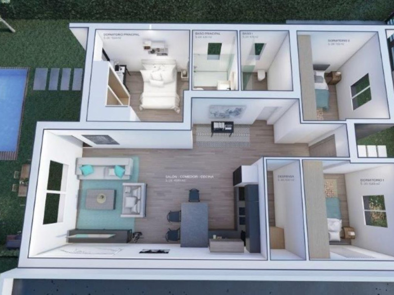 Les presentamos estos magníficos chalets pareados construidos sobre parcelas de 300 m2 con las mejores calidades y aislantes del mercado. Una de las viviendas mas eficientes de nuestros tiempos.Las viviendas distribuidas en una única planta consta de tres habitaciones una de ellas tipo suite con vestidor y baño, otro baño de servicio y un gran salón con cocina americana de casi 40 metros cuadrados en total. Podrá aprovechar los porches que esta construcción le permite para poder disfrutar de su jardín.Las calidades de estas viviendas son de diseño moderno. Suelos cerámicos imitación madera, puertas lacadas en blanco, piscina incluida en el precio. Descubre todas las ventajas que tiene esta vivienda llamando a nuestro departamento comercial. ¡LOS SUEÑOS NO SE PARAN!