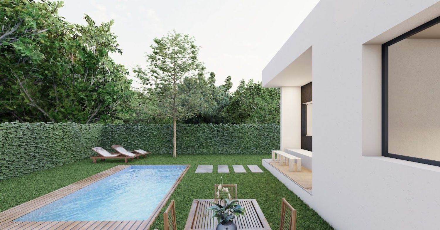 Les presentamos estos magníficos chalets pareados construidos sobre parcelas de 300 m2 con las mejores calidades y aislantes del mercado. Una de las viviendas mas eficientes de nuestros tiempos.Las viviendas distribuidas en una única planta consta de tres habitaciones una de ellas tipo suite con vestidor y baño, otro baño de servicio y un gran salón con cocina americana de casi 40 metros cuadrados en total. Podrá aprovechar los porches que esta construcción le permite para poder disfrutar de su jardín.Las calidades de estas viviendas son de diseño moderno. Suelos cerámicos imitación madera, puertas lacadas en blanco, piscina incluida en el precio. Descubre todas las ventajas que tiene esta vivienda llamando a nuestro departamento comercial. ¡LOS SUEÑOS NO SE PARAN!