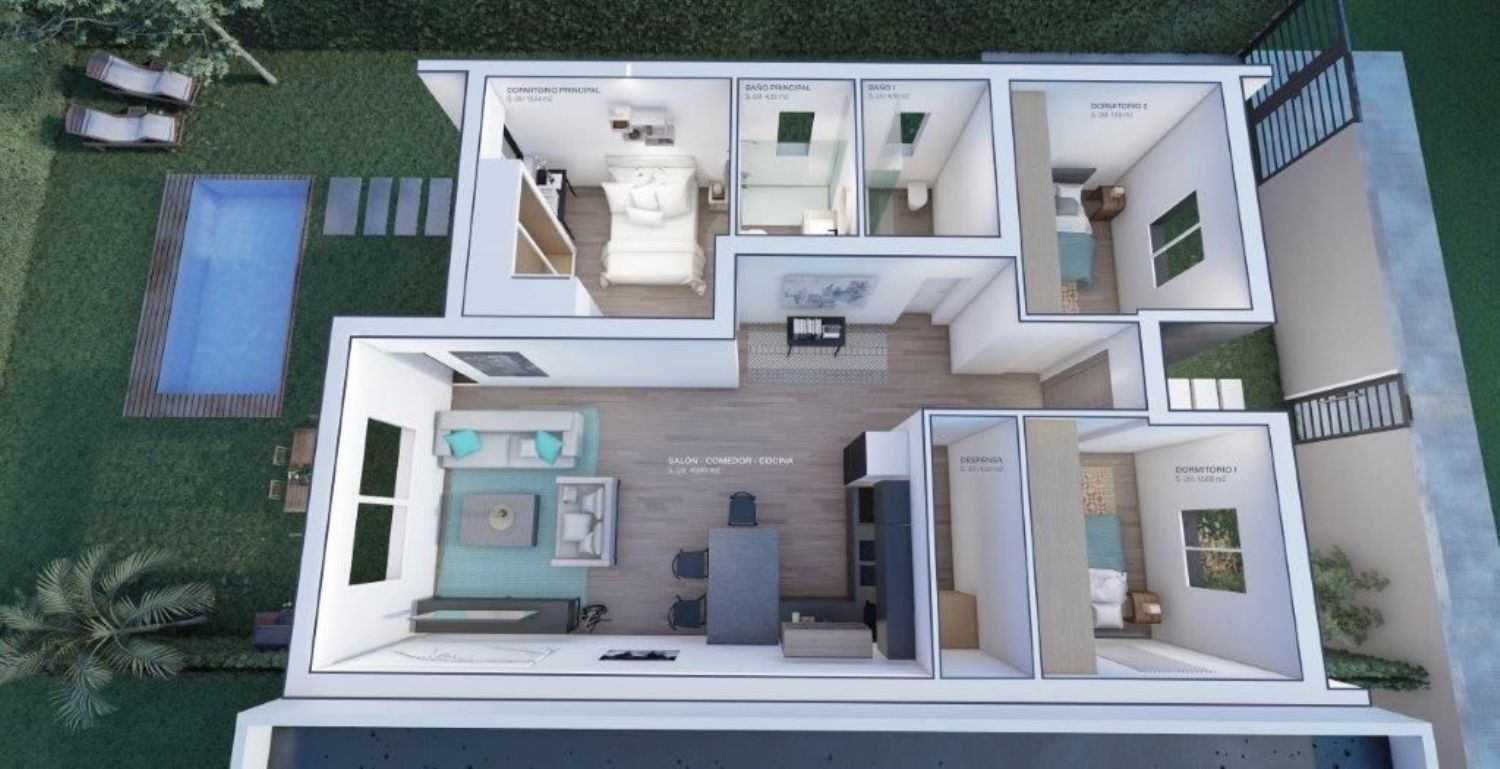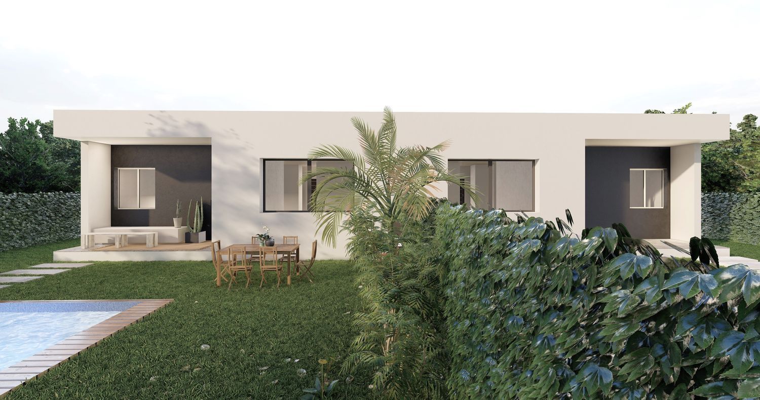 Les presentamos estos magníficos chalets pareados construidos sobre parcelas de 300 m2 con las mejores calidades y aislantes del mercado. Una de las viviendas mas eficientes de nuestros tiempos.Las viviendas distribuidas en una única planta consta de tres habitaciones una de ellas tipo suite con vestidor y baño, otro baño de servicio y un gran salón con cocina americana de casi 40 metros cuadrados en total. Podrá aprovechar los porches que esta construcción le permite para poder disfrutar de su jardín.Las calidades de estas viviendas son de diseño moderno. Suelos cerámicos imitación madera, puertas lacadas en blanco, piscina incluida en el precio. Descubre todas las ventajas que tiene esta vivienda llamando a nuestro departamento comercial. ¡LOS SUEÑOS NO SE PARAN!