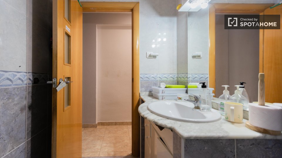 Pokoje do wynajęcia w mieszkaniu o powierzchni 90 m² i 4 sypialniami w Jesús w Walencji. Zamieszkaj właściciel, jego syn i jego dwa koty, z którymi będzie dzielił części wspólne. Kuchnia jest w pełni wyposażona i posiada piekarnik, 4-palnikową kuchenkę elektryczną i kuchenkę mikrofalową, mały stolik + 2 stołki do spożywania posiłków dla maksymalnie 2 osób. Będziesz mieć również swoje osobiste miejsce do przechowywania w kuchni (zamrażarka + szafki kuchenne). Każdy pokój ma swój własny klucz prywatny.