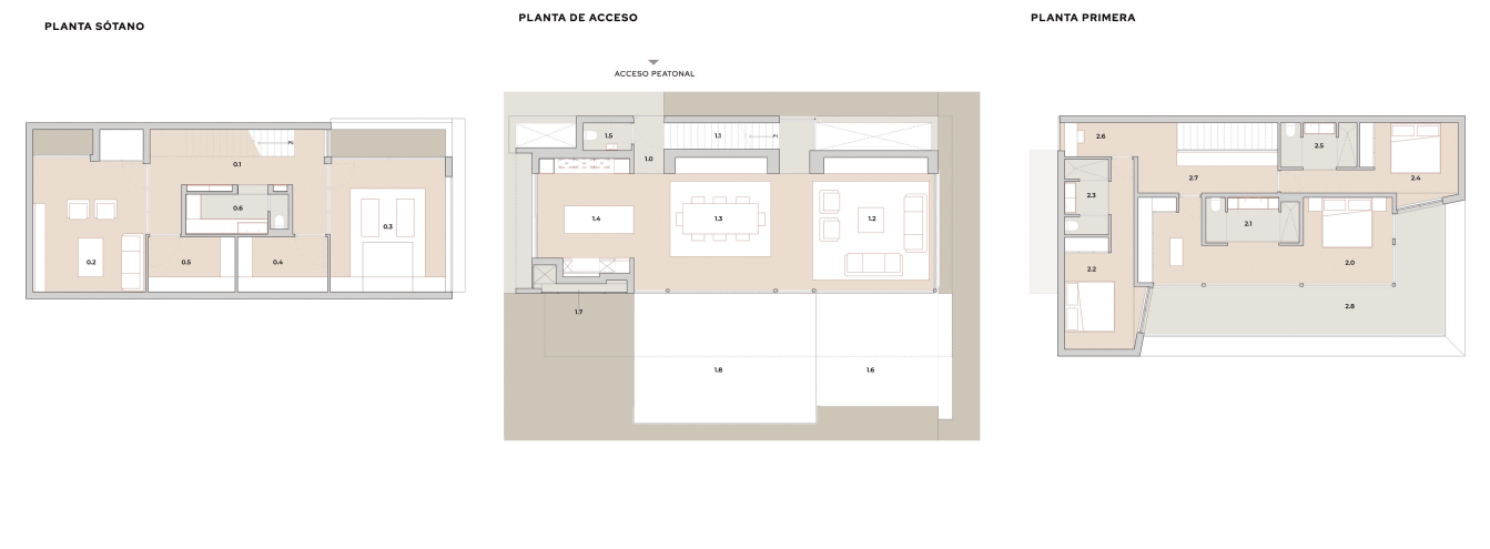 Espaciosas y llenas de luz, las residencias están compuestas por dos volúmenes principales que se integran de manera armónica, formando así porches acogedores y terrazas sombreadas que invitan al disfrute del clima mediterráneo. La estructura permite amplios ventanales que maximizan la luz natural y ofrecen vistas panorámicas impresionantes, integrando de manera perfecta el entorno natural con el confort interior.