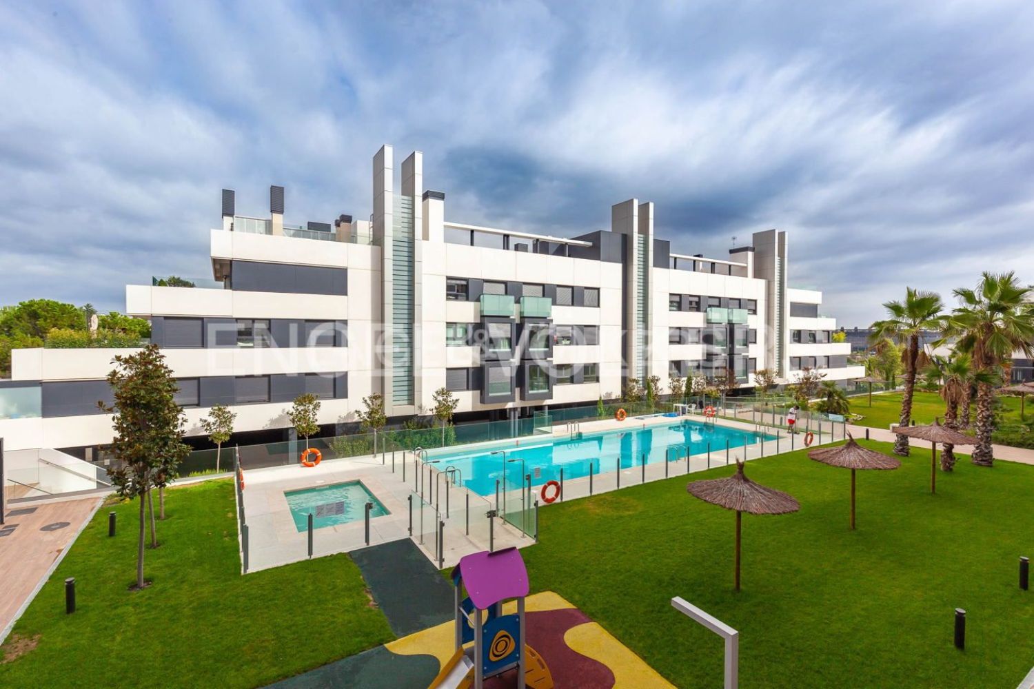 Engel & Völkers presenta esta vivienda exterior de tres dormitorios y dos baños, con lavadero y zona de vestidor en Dormitorio principal con dos o tres plazas de garaje y trastero, en urbanización privada.En un espacioso y elegante jardín para el disfrute y relax de pequeños y mayores.Toda la belleza y modernidad que proporciona una magnífica piscina desbordante de agua salada. Y un completo equipamiento que incluye pista de pádel, sala co-living con wifi y gastroteca, sala de comunidad con home cinema y gimnasio con vestuarios y sauna.
