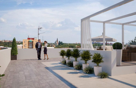 FIN DE OBRA: PRIMER TRIMESTRE 2024Estrena casa el próximo año. ÚLTIMAS VIVIENDAS DISPONIBLESImagínate llegar a casa después de un día duro de trabajo. No tienes ganas de nada pero, de repente, sonríes porque te has dado cuenta de que, en tu propio hogar, tienes el mejor plan para desconectar, relajarte y cargar baterías.Ponte cómodo, sube a tu chill-out particular y enamórate de la puesta de sol como solo se ve en Madrid y fíjate en sus colores, sus tejados, sus rincones especiales… Prueba a refrescarte en la piscina y termina secándote en el solárium mientras ves las primeras estrellas aparecer.Esto es solo un poco de lo que te ofrece , un residencial en pleno barrio de Ventas que cuenta con viviendas espectaculares de diferentes tipologías para adaptarse a las necesidades de sus propietarios.Contarás de calor, refrigeración y agua caliente sanitaria mediante equipo de aerotermia de alta eficiencia energética y suelo radiante/refrescante, un sistema de climatización eficiente, confortable y saludable.Las zonas comunes en la azotea compuestas por chillout, jacuzzi y solárium son algo exclusivo de esta promoción porque no existe nada parecido en toda la zona y te proporcionarán calidad de vida, ahorro y la posibilidad de disfrutar al máximo de tu ocio. está situado en el barrio de Ventas, en el distrito de Ciudad Lineal, un barrio con todo lo que necesitas (zonas verdes, colegios, centros de salud, comercios…) y con excelentes comunicaciones y transporte público, llegando cómodamente al centro en apenas unos minutos.