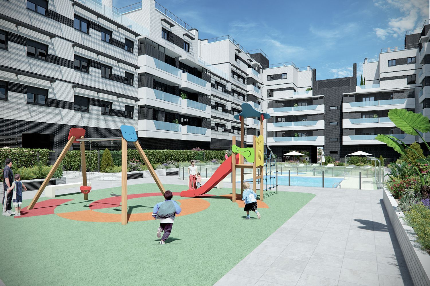 La promoción estará formada por viviendas de 1 a 4 dormitorios en una urbanización cerrada con plantas bajas con jardín y áticos.Además, dispondrá de amplias zonas comunes donde destacarán las zonas verdes y los espacios públicos. Con piscina de adultos e infantil, gimnasio, gastrobar y zona de juegos infantiles.Todas las viviendas se entregan con garaje y trastero.Magníficas calidades destacando la calefacción por suelo radiante, agua caliente sanitaria central con aporte de energía solar, preinstalación de recarga de vehículos eléctricos y dotación de domótica. Las cocinas amuebladas se entregan con placa de inducción, horno encastrado y campana extractora.Rápidos accesos a la M-40, M-45 y R-5.Enlace al dossier al final de la página.