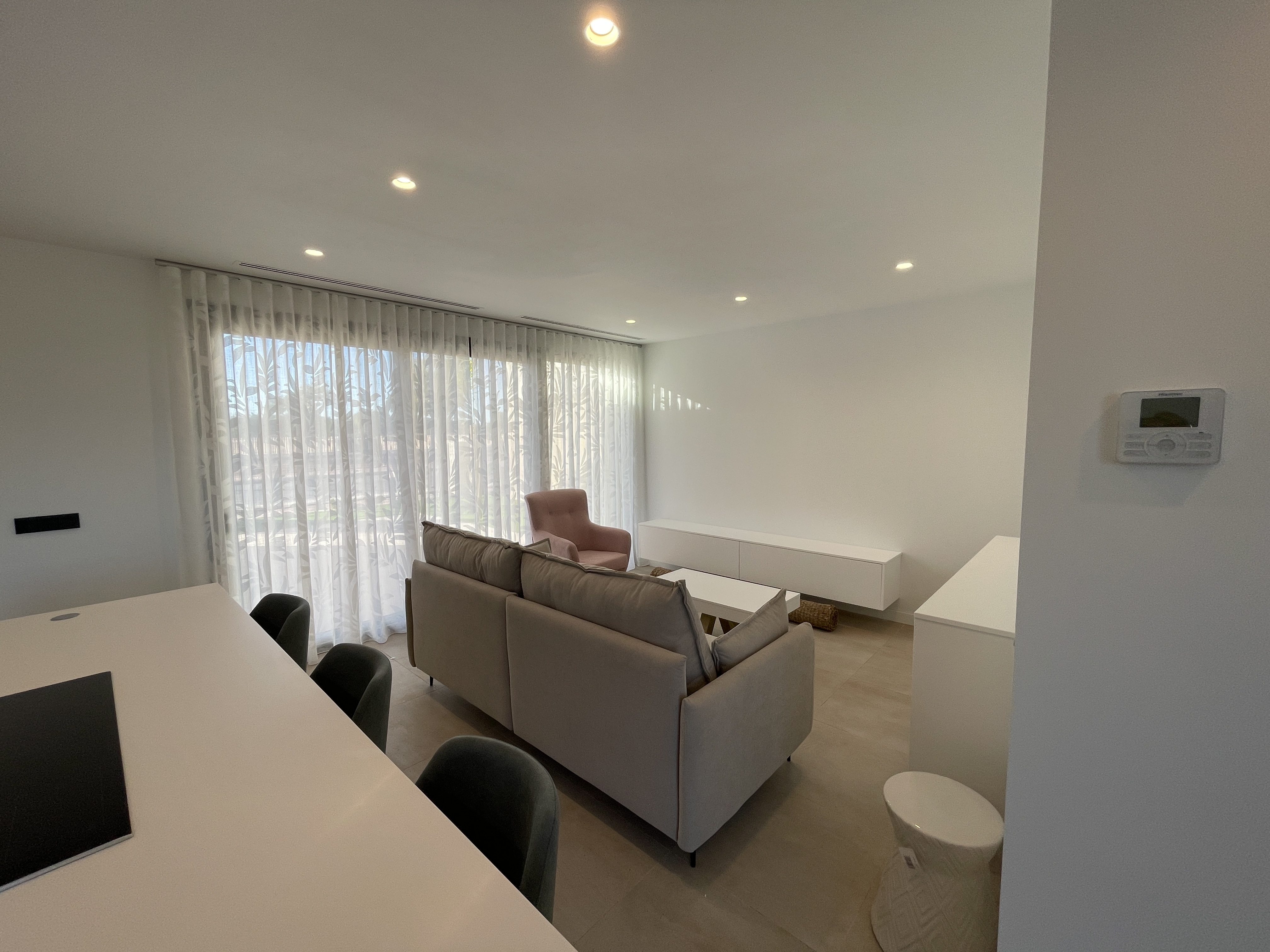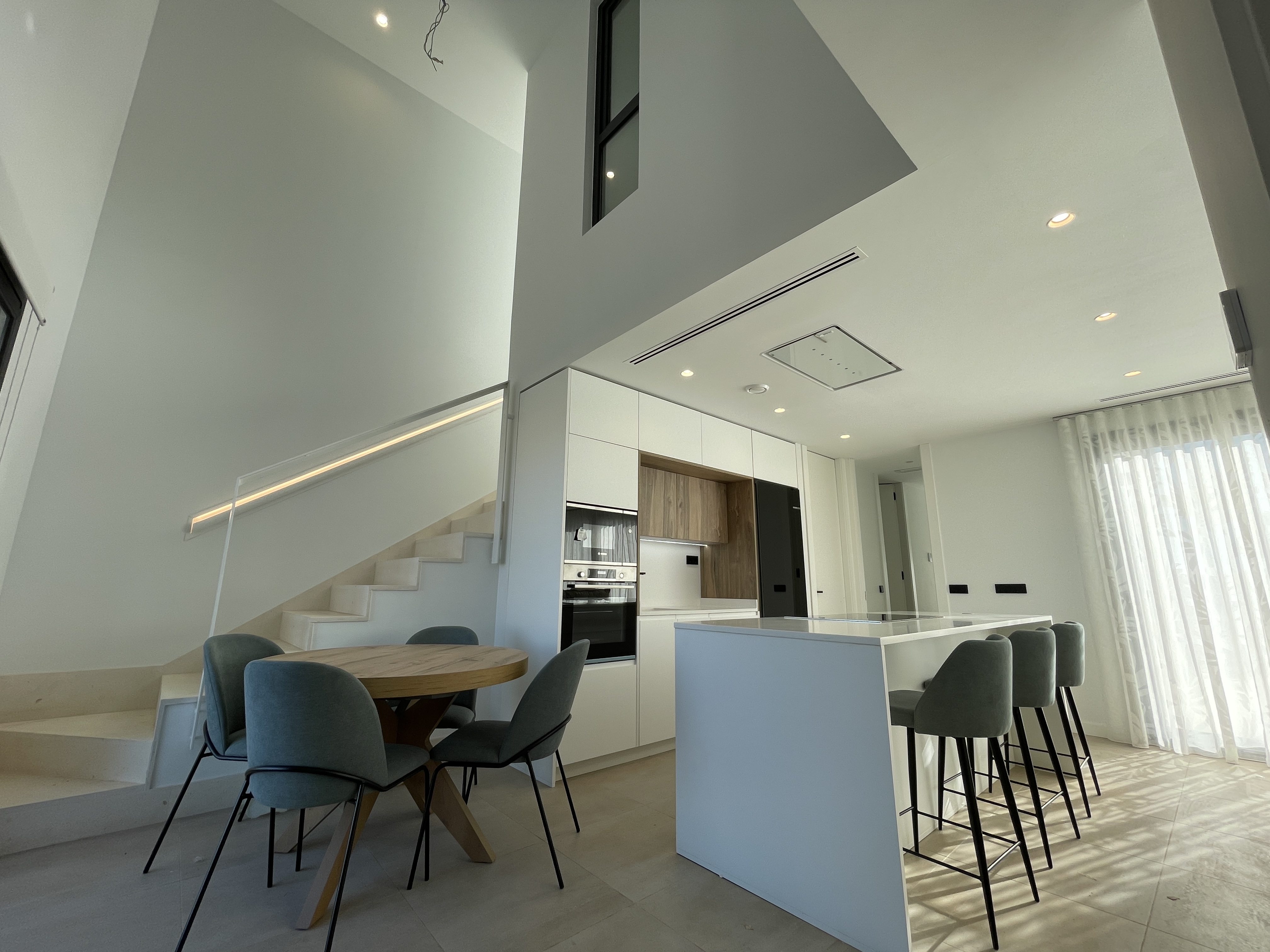 Este chalet Zen Sakura con tres dormitorios, tres baños completos y varias terrazas con hermosas vistas. En la planta baja hay dos dormitorios y dos baños de lujo. El salón es amplio y luminoso y se encuentra junto a la moderna cocina abierta con isla de cocción. Disfrute de su desayuno o comida en la barra de desayuno. La cocina está equipada con varios electrodomésticos y una campana extractora integrada en el techo. Puede elegir entre diferentes tipos de azulejos y colores para las puertas de la cocina para la implementación de su cocina. También puede elegir las baldosas del suelo.