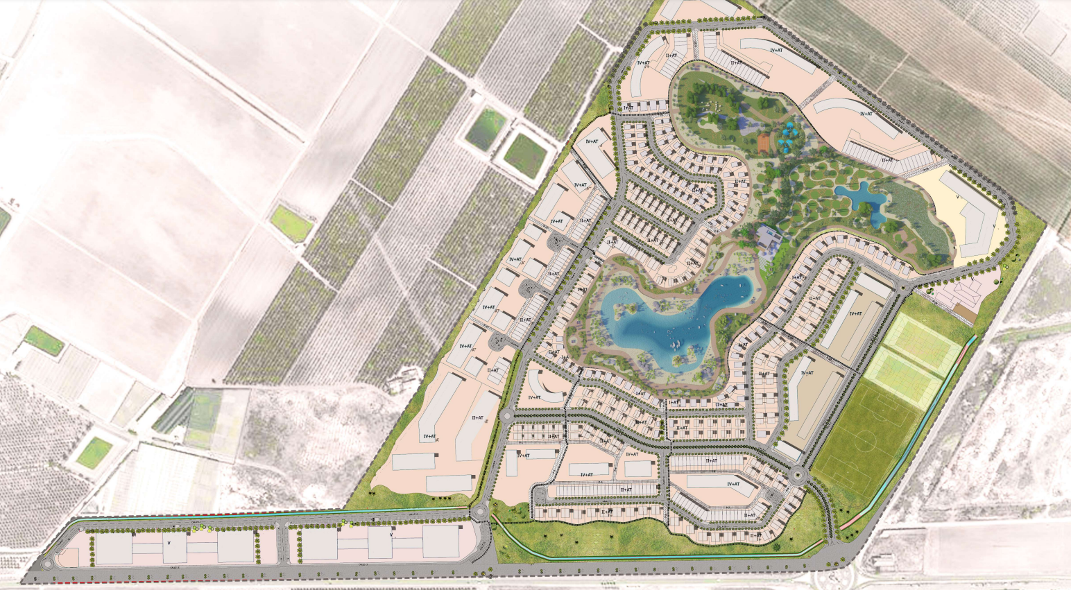 Santa Rosalía Lake & Life Resort está situado entre Torre-Pacheco y la localidad costera de Los Alcázares. El complejo está diseñado en torno a una zona verde de nada menos que 124.000 m². El centro radiante es la laguna de 16.000 m² con aguas cristalinas, playas de arena blanca y palmeras. Hay dos islas en la laguna, una de ellas con bar en la piscina. Habrá chiringuitos alrededor de la laguna. Otras instalaciones del complejo son rutas de senderismo y ciclismo, pistas de padel y tenis, un minigolf, jardines, zonas de recreo, áreas de juego para niños, una casa club y un parque para pasear perros. El complejo cuenta con seguridad y sólo es accesible para los residentes. Las primeras viviendas se entregarán en 2022. El proyecto abarca 700.000 m² y hasta 2027 se construirán un total de 1.300 viviendas, villas y apartamentos.
