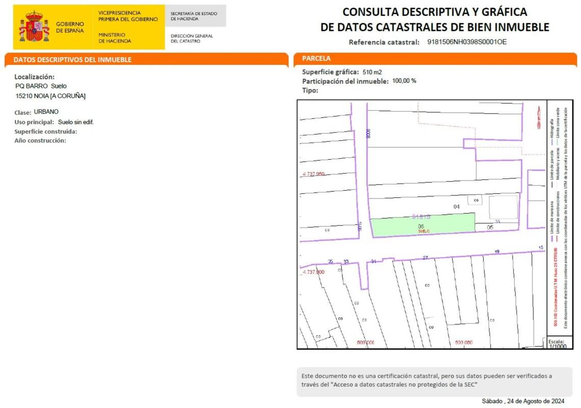 (Ref: 1499V) INMOBILIARIA MONTELOURO VENDE: Finca urbana en el lugar de A Rasa, situado a tan solo 1,5 km del centro histórico de Noia. Tiene una superficie de 285 m2 (en titulo de propiedad...