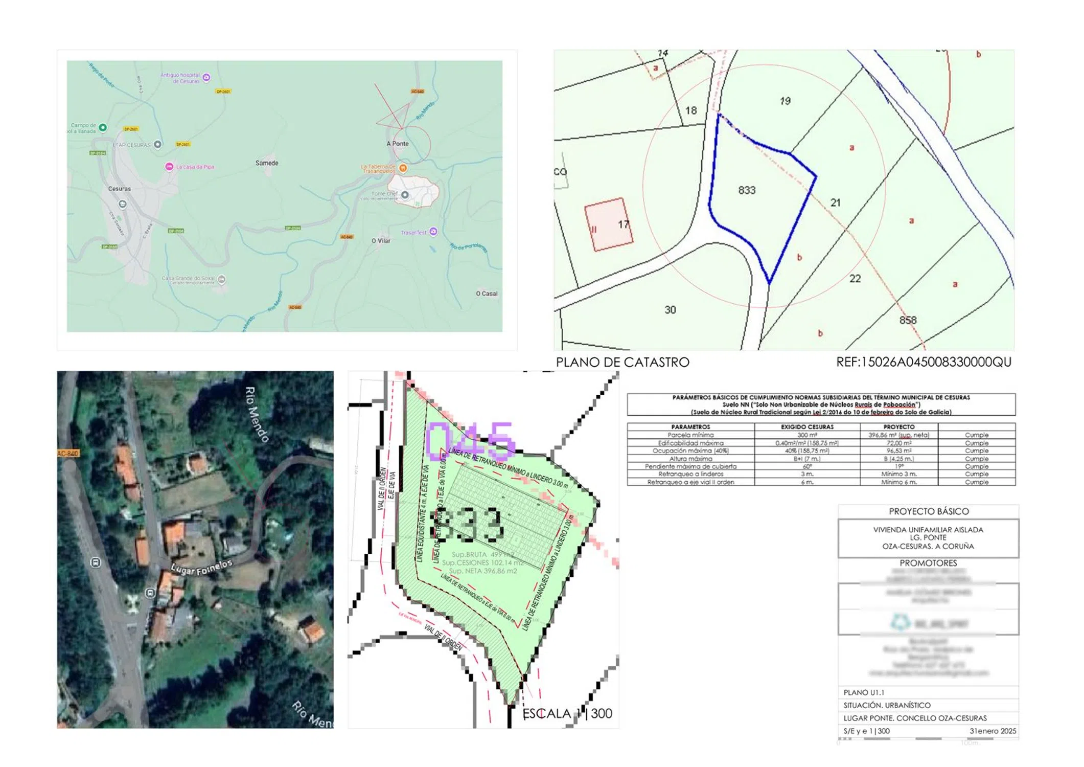 OPORTUNIDAD ÚNICA EN A PONTE DE TRASANQUELOS, OZA CESURAS. Se vende parcela de 500 m² con proyecto visado, licencia de obra del Ayuntamiento concedida, estudio geotécnico incluido y acceso a todos los servicios, agua, luz, alcantarillado e internet. Todo listo para comenzar la obra de tu vivienda unifamiliar: una vivienda de una planta de 72 m², con dos dormitorios, amplio salón cocina de concepto abierto, un baño, lavadero/ tendedero, porche y toda la distribución en regla. A 15 minutos de Betanzos y a 30 de La Coruña. En una zona rural con mucho encanto, rodeada de naturaleza y ala lado del río, pero con todos los servicios muy cerca. Ideal para descansar o teletrabajar. Aprovecha una de las últimas licencias concedidas antes de la nueva moratoria urbanística, no se otorgarán nuevas licencias en esta zona durante al menos los próximos 2-3 años. Ahorra tiempo, trámites y dinero con este proyecto, que ya cuenta con casi todo el trabajo técnico y burocrático. Una oportunidad perfecta para construir el hogar que sueñas o tu escapada de fin de semana ideal. NOTA: Este anuncio no es vinculante, puede contener errores, se muestra a título informativo y no contractual. No tiene validez jurídica.