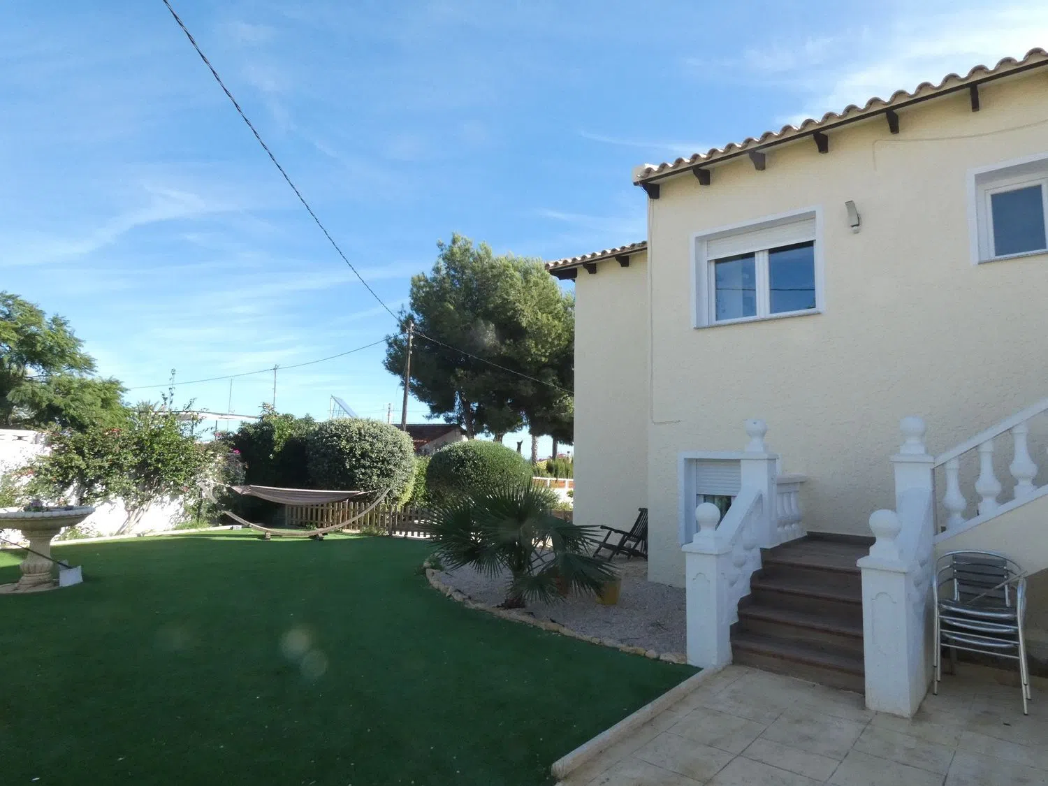 На внешней территории, помимо соляного бассейна, имеется открытая зона для барбекю, обеденная зона и социальная площадка, что идеально подходит для проведения мероприятий. Здесь также есть пергола, сад с цитрусовыми деревьями и детская площадка, печь для пиццы, сауна, бар, туалет, две душевые с горячей водой и погреб. Все это находится в уникальном и отличном месте с красивыми видами на море, горы и апельсиновые плантации, при этом всего в 10 минутах пешком от центра и в 20 минутах пешком от пляжа.