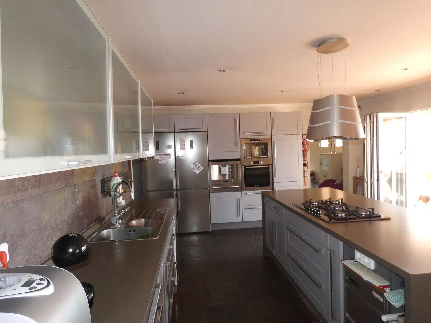 К тому же, в доме предусмотрены кондиционер, центральное отопление, тёплые полы в ванных комнатах и главной спальне, встроенные шкафы, камин и пеллетная печь.