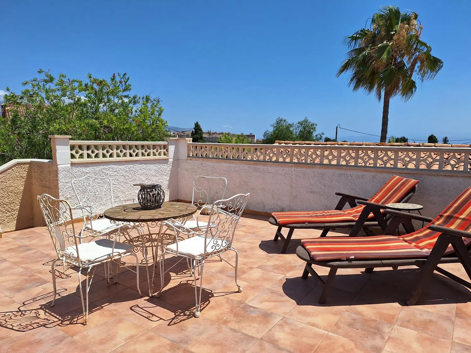 С верхней террасы открывается панорамный вид на 360 градусов на горы и средиземное море, что добавляет обаяния этой недвижимости. Сад представляет собой сочетание кустарников и живой изгороди, а также вымощенных зон вокруг частного бассейна, что создает атмосферу уединения.